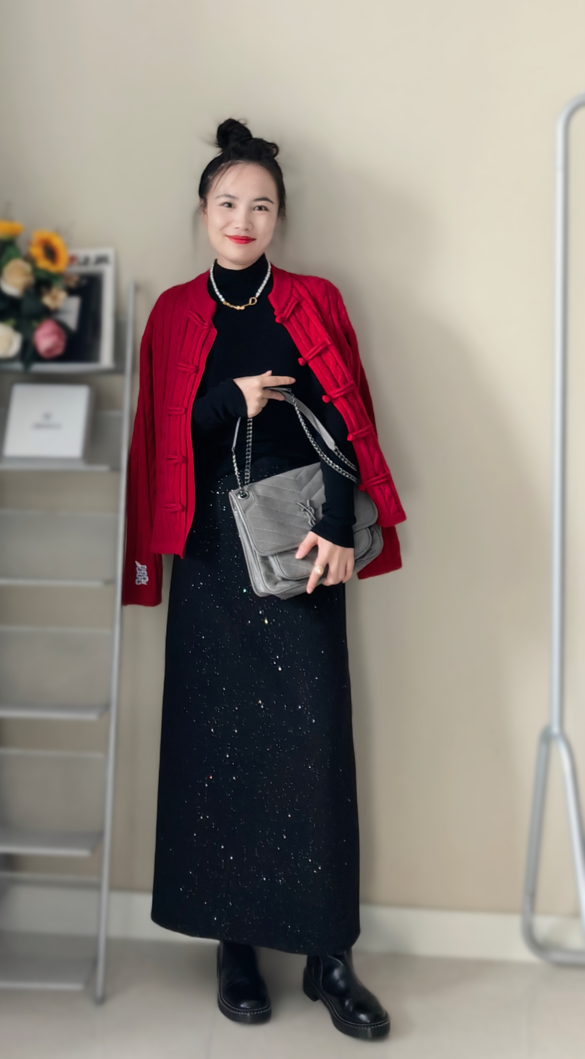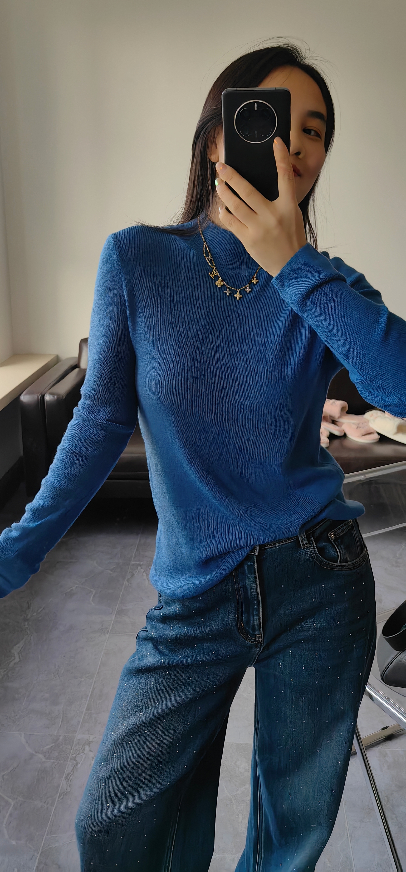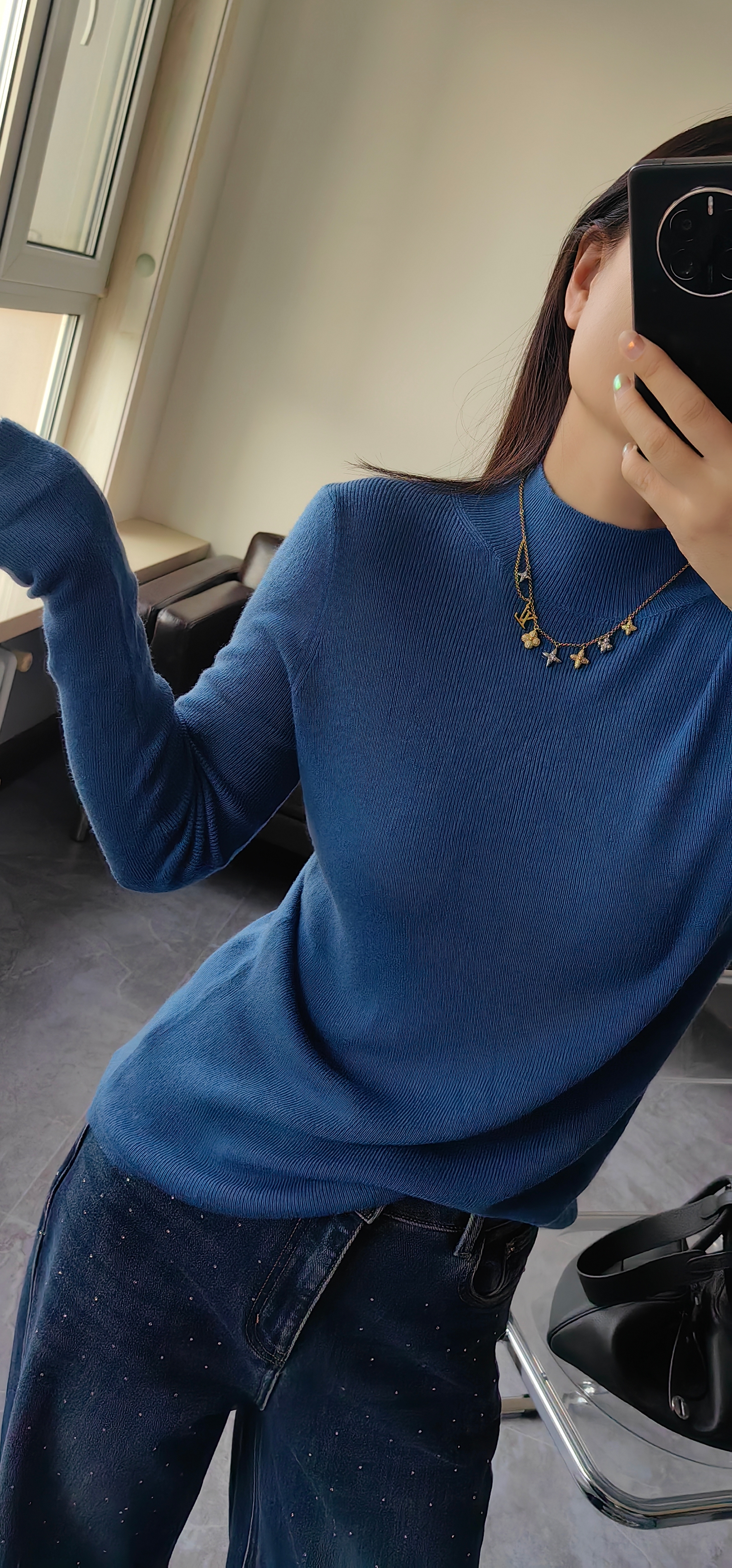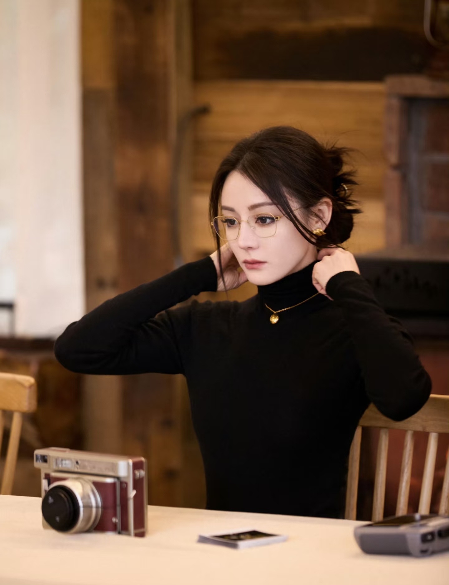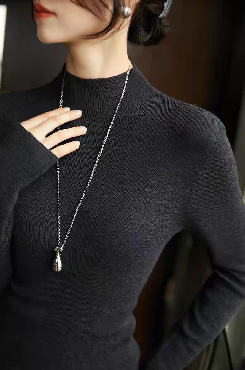 黑色羊毛衫是衣橱常青款,很喜欢半高领的高度