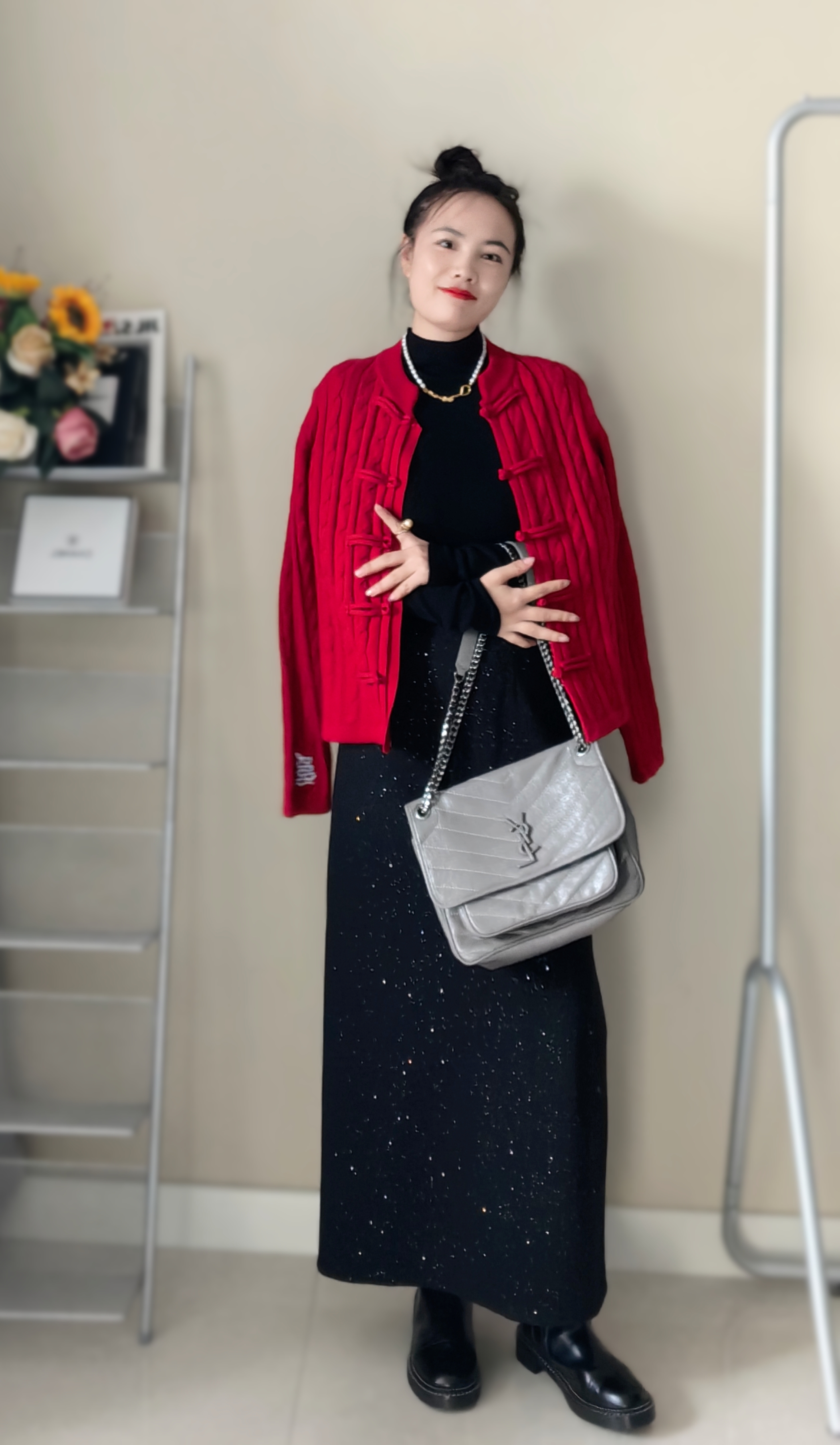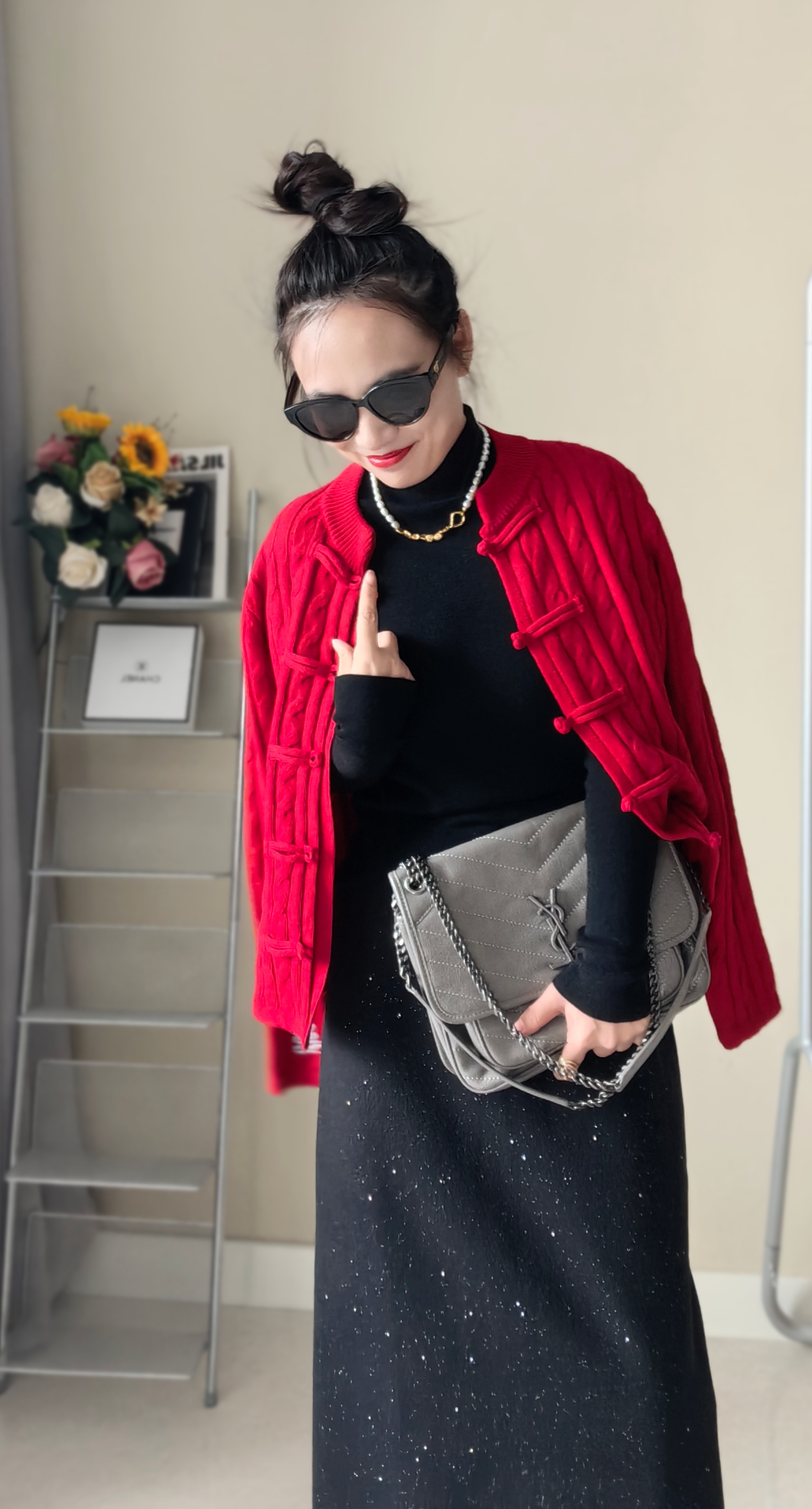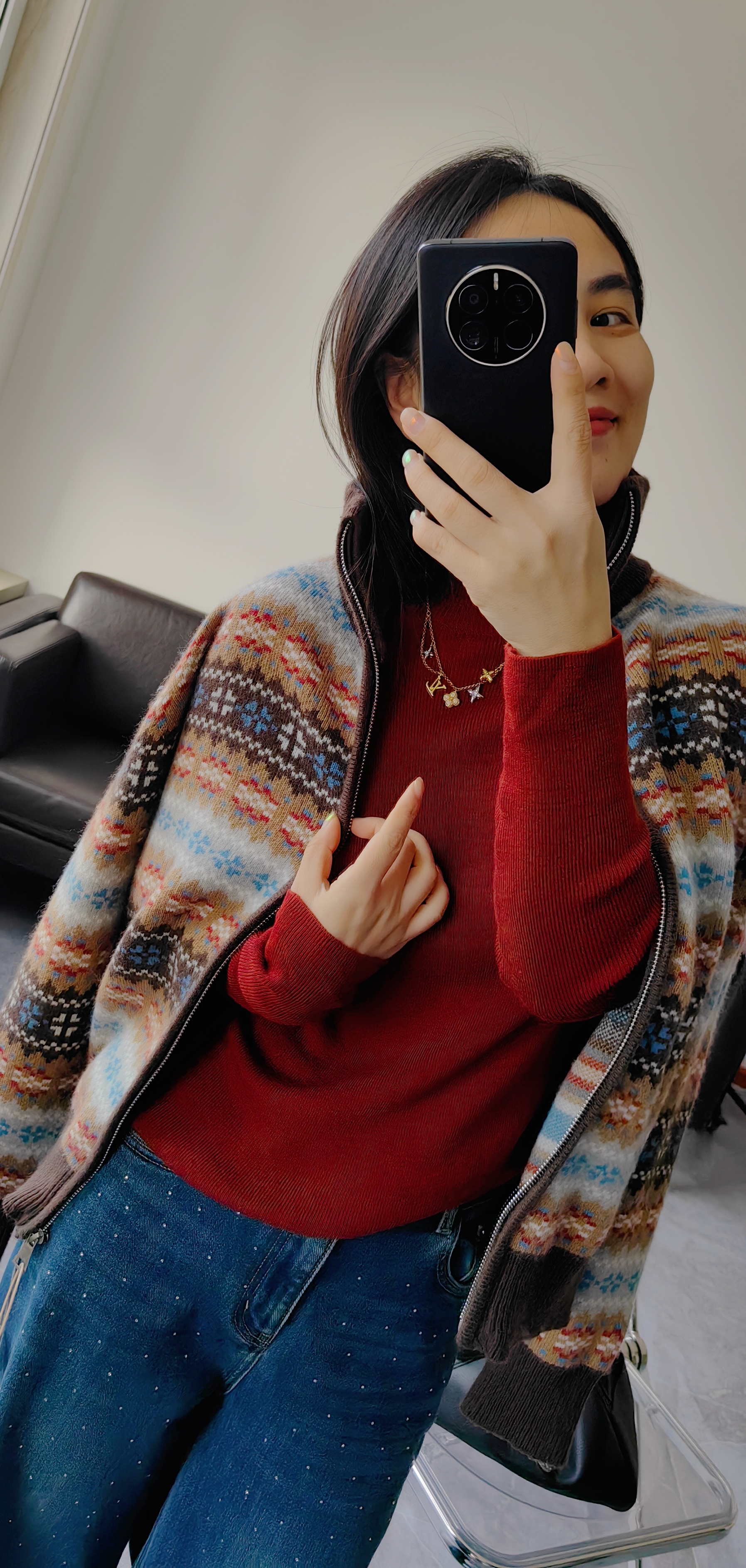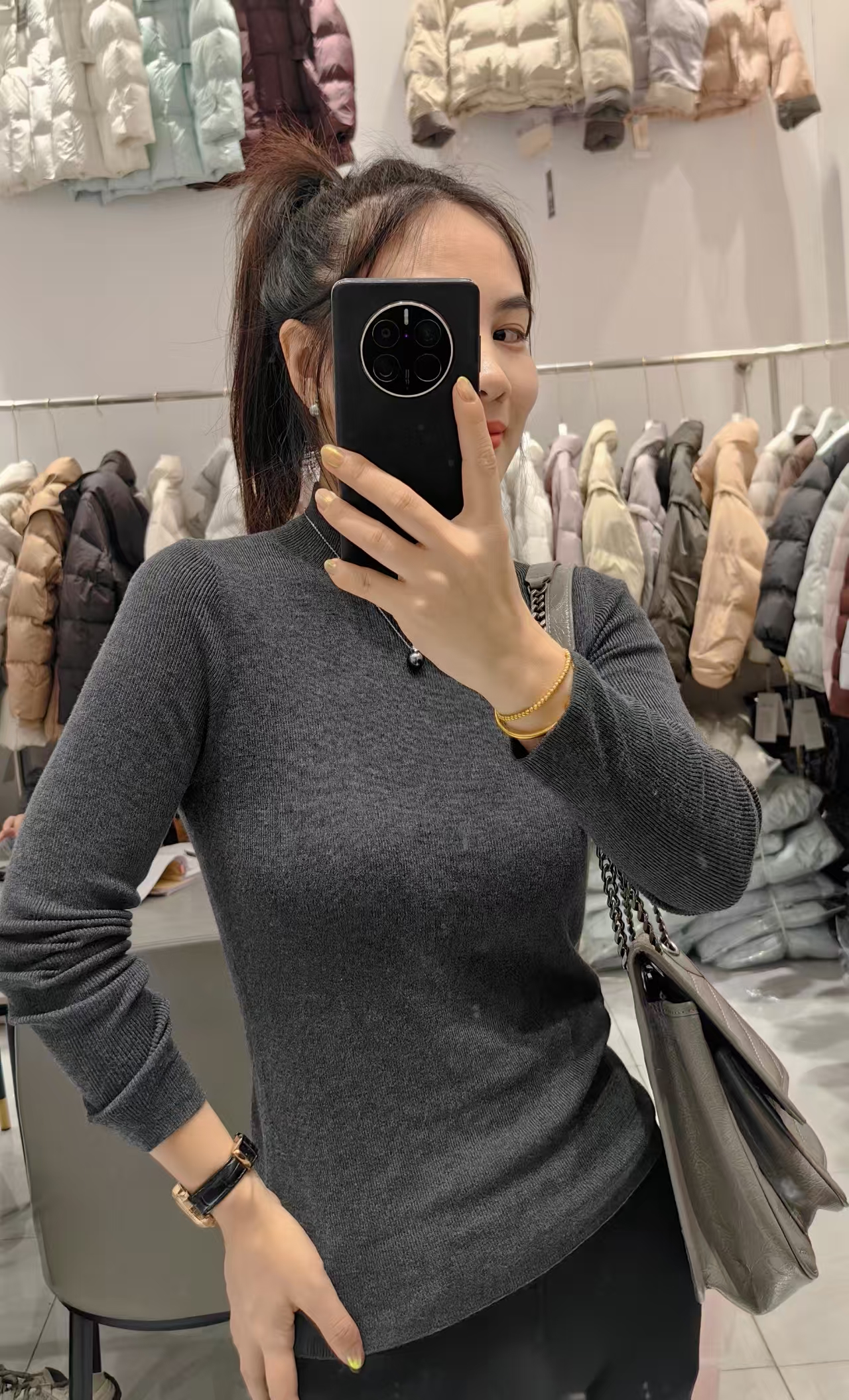 黑色羊毛衫是衣橱常青款,很喜欢半高领的高度