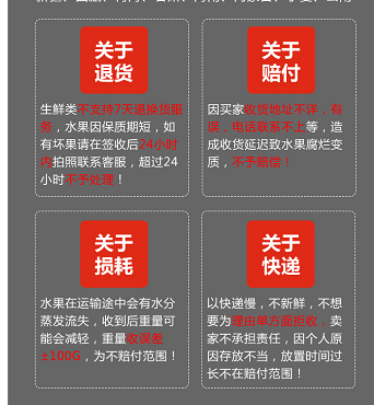4、因为疫情等不可抗力因素导致的商品滞留造成的坏果暂时不理赔。
