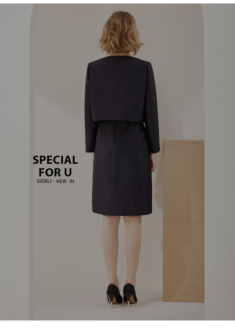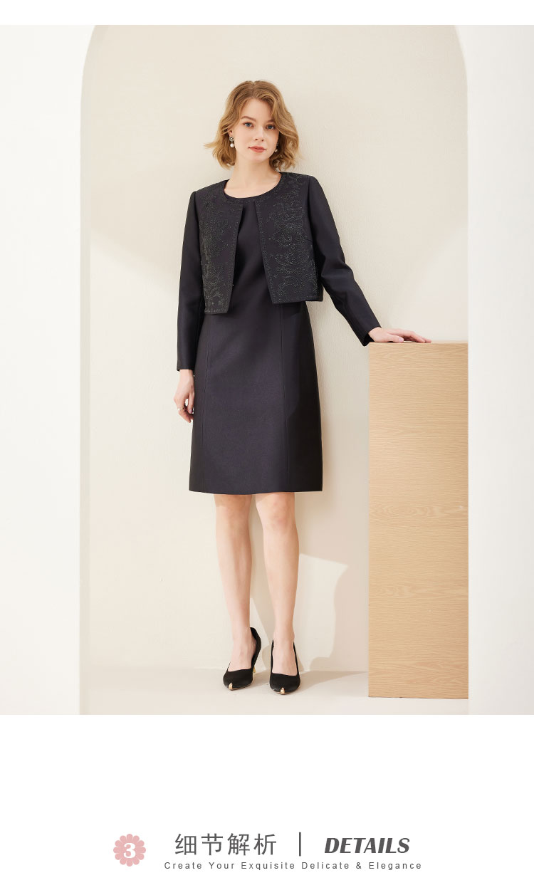 MC840斯尔丽瑟俪2022年秋上新浮雕感烫钻两件套连衣裙