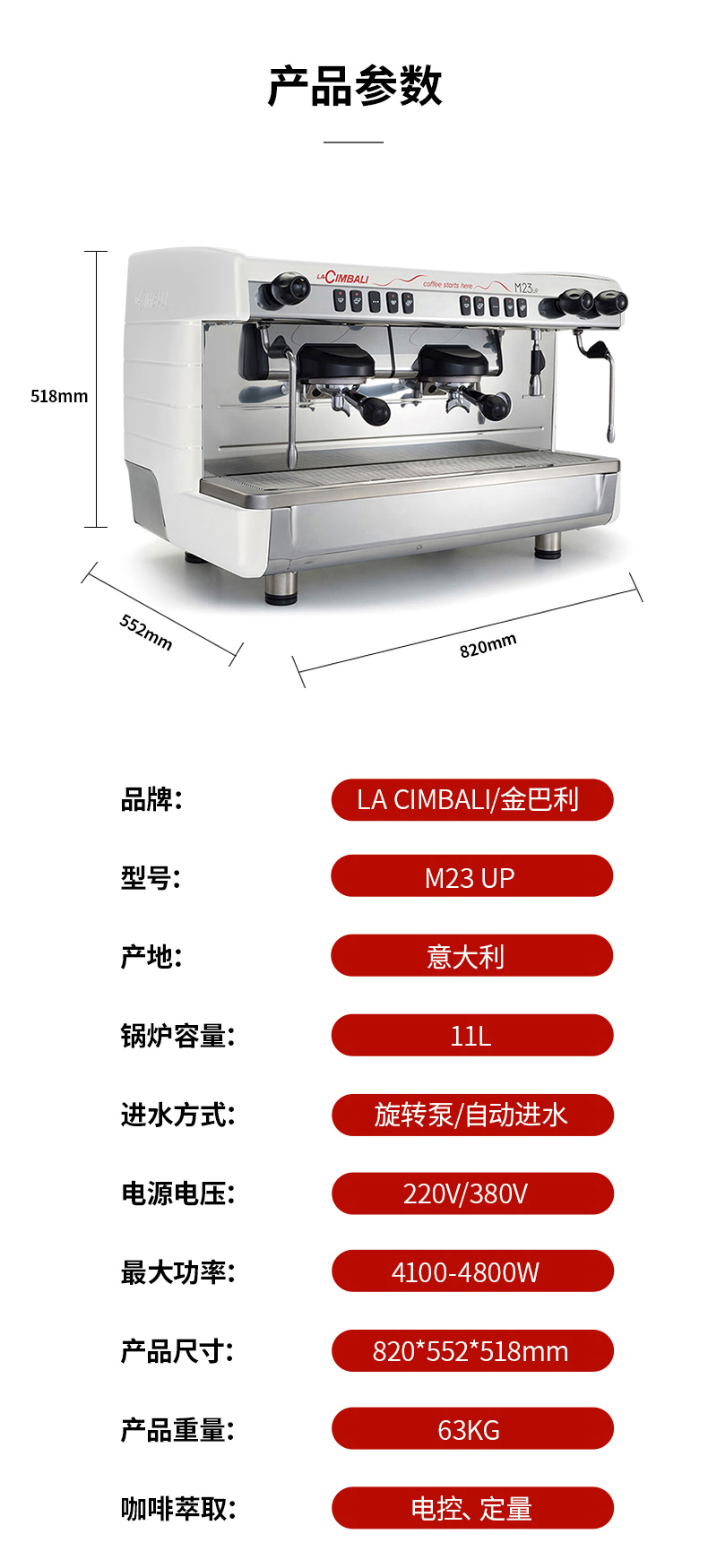 LaCimbali/金巴利 M23UP 半自动咖啡机 (红/白/黑)(M27RE升级款)