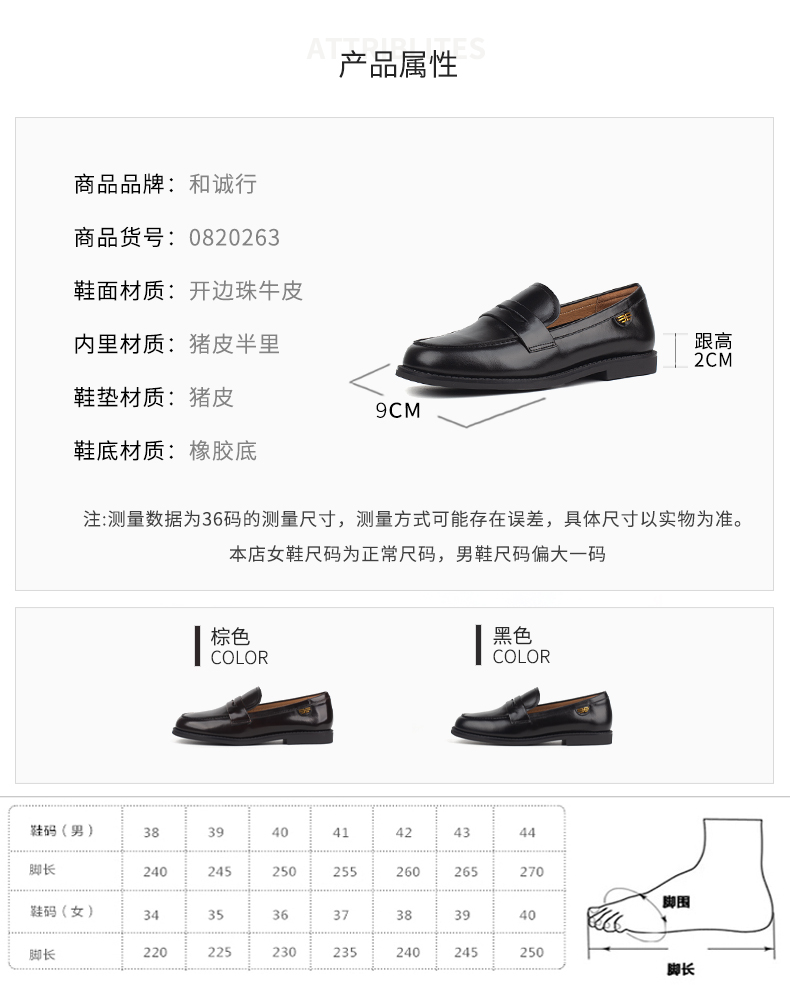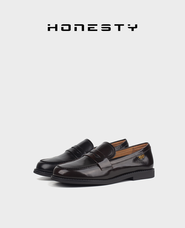 和诚行 2023秋冬新款复古乐福鞋女简约百搭平跟单鞋小皮鞋0820263
