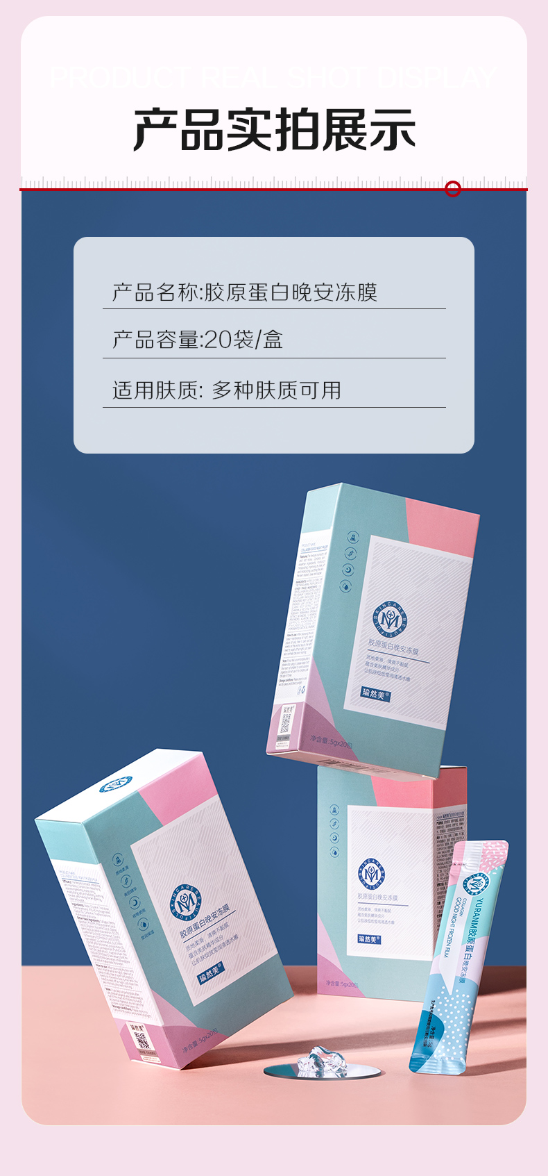 【69元3件、99元5件】胶原蛋白晚安冻膜睡眠面膜免洗补水夜间收缩毛孔提亮肤色