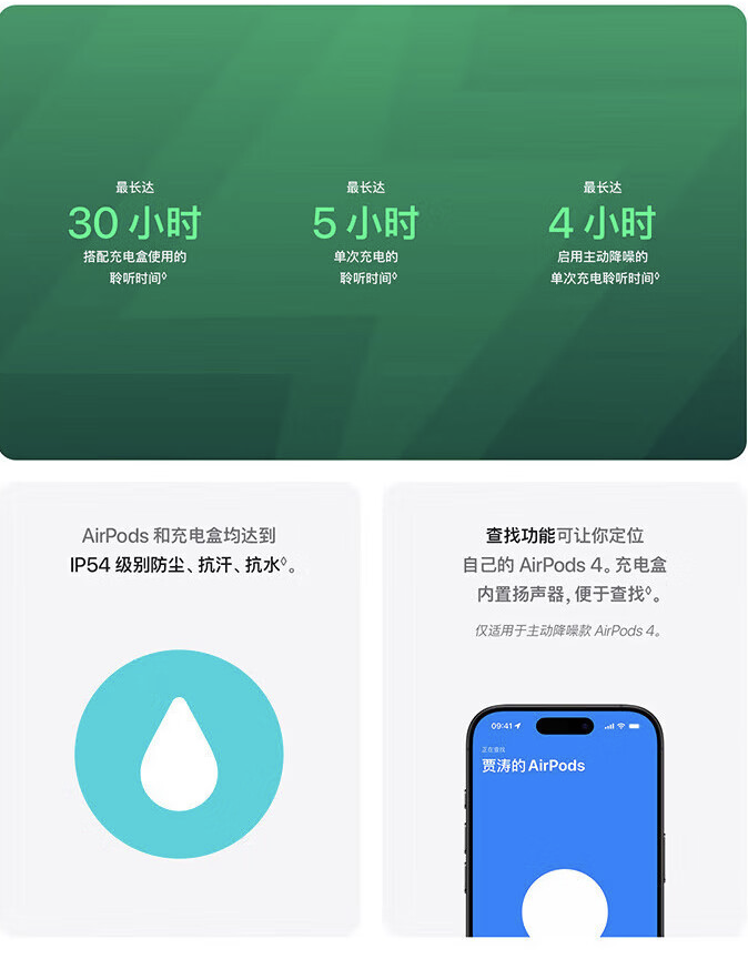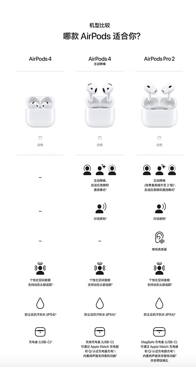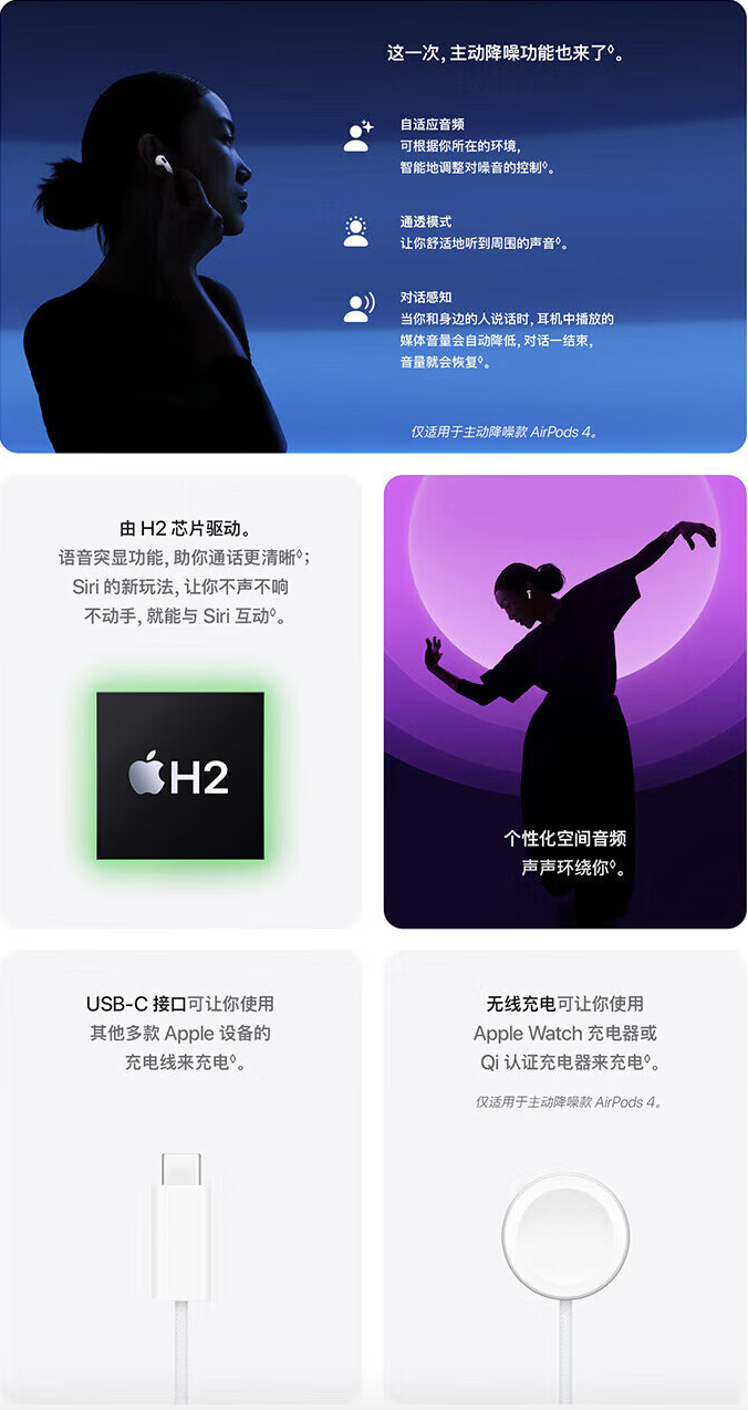 Apple/苹果 AirPods 4 搭配USB-C充电盒 苹果耳机 蓝牙耳机 适用iPhone/iPad/Mac 四代