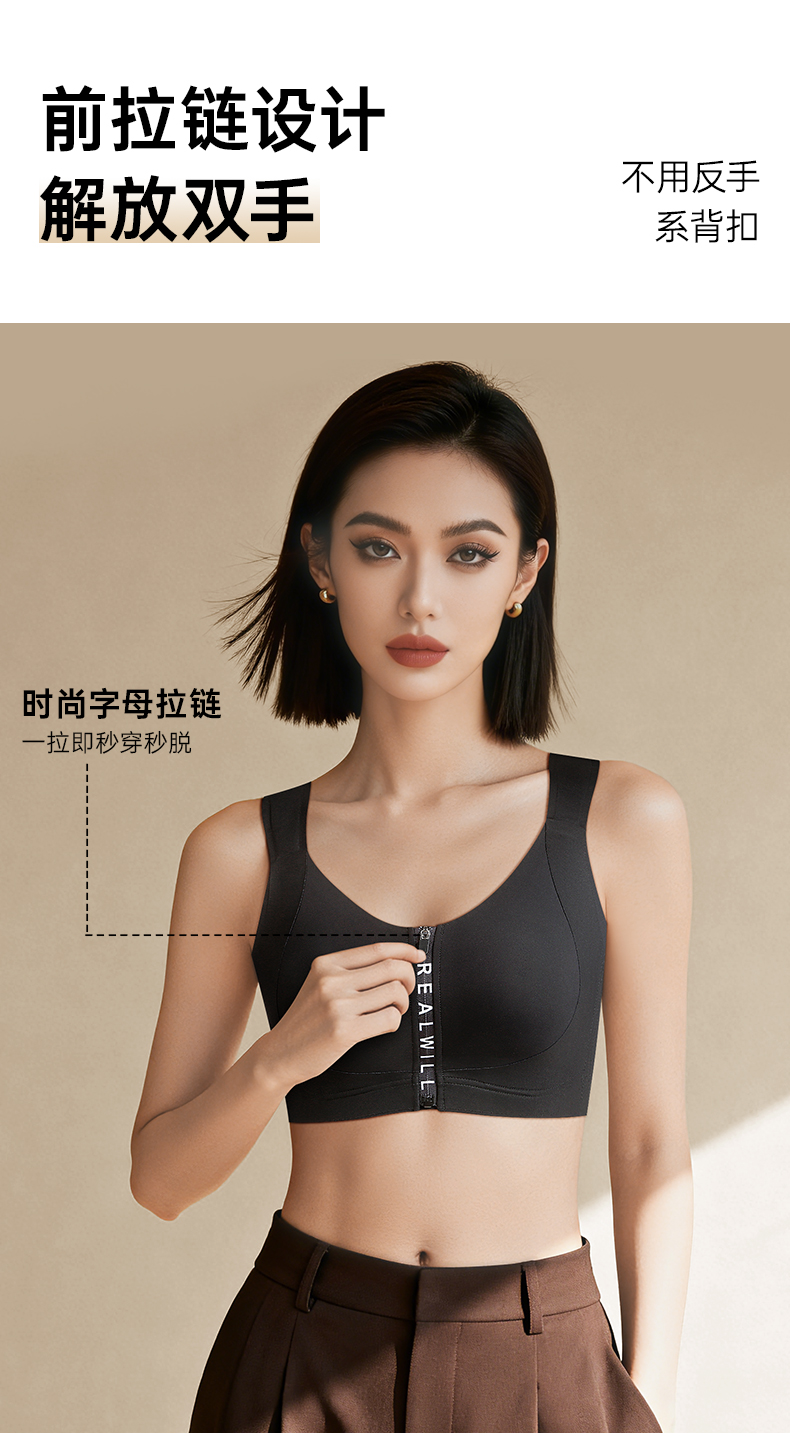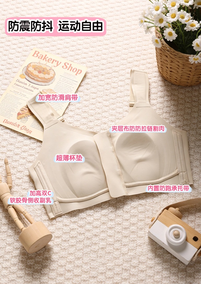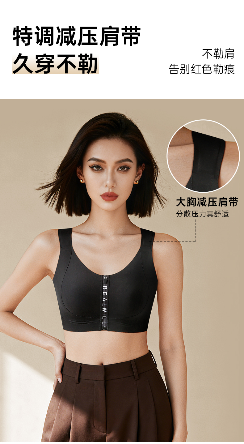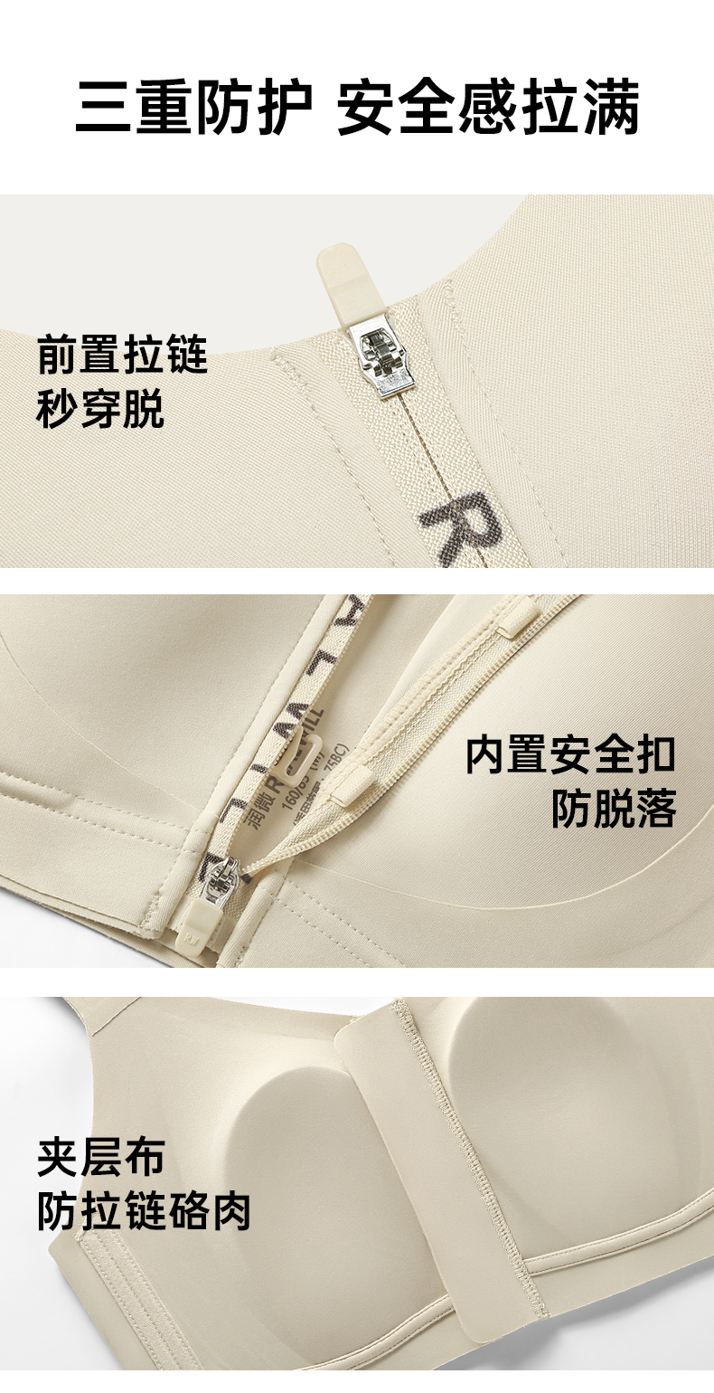 💗【一拉薄字母版-B-F杯】【梭形减压肩带】【防垂防震-内置防跑承托带】【双层软支撑】润微前拉链款大胸显小梭型肩带减压 一拉小【提拉系列】