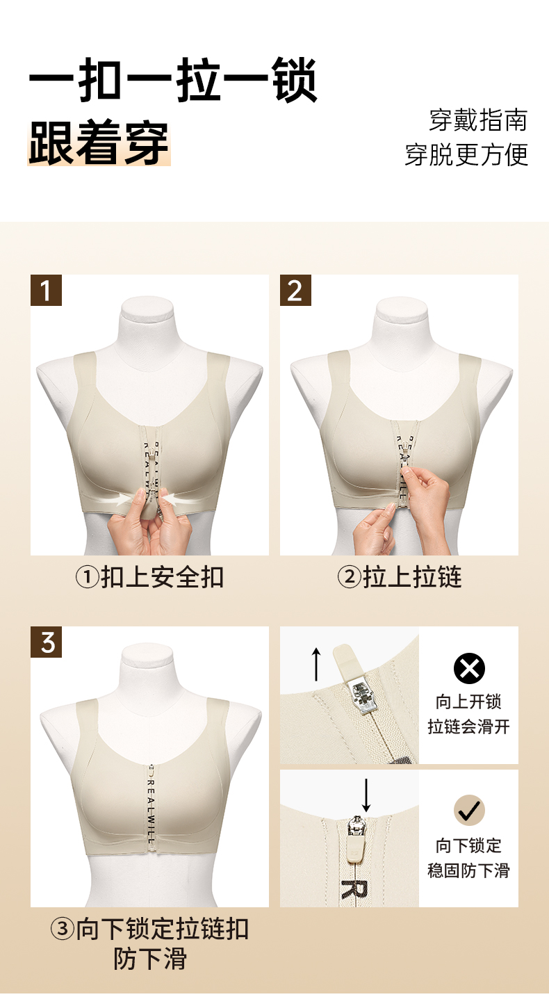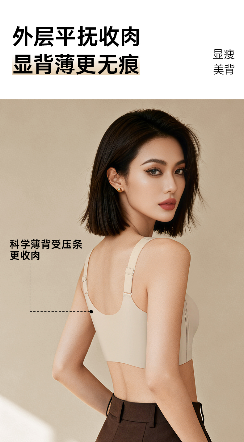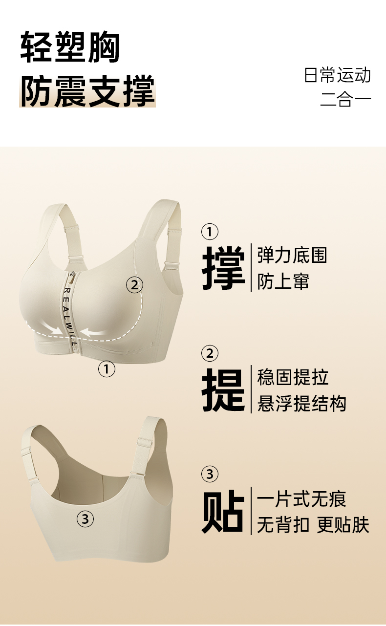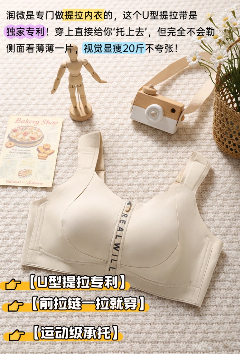 💗【一拉薄字母版-B-F杯】【梭形减压肩带】【防垂防震-内置防跑承托带】【双层软支撑】润微前拉链款大胸显小梭型肩带减压 一拉小【提拉系列】