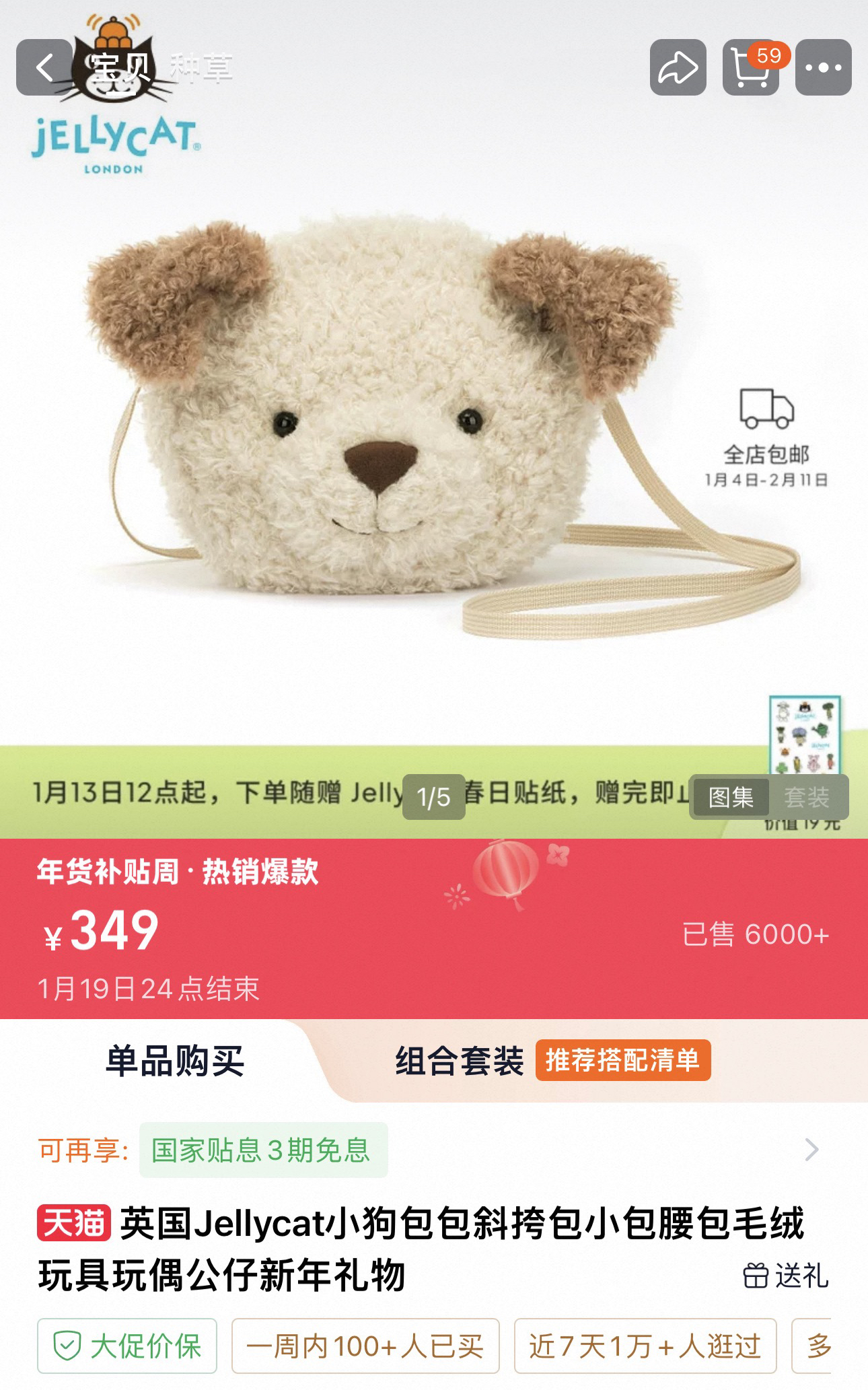 顺丰包邮 已入库 国内代工厂订单剩余,原单 JeeLYCAT萌宠毛绒斜挎包~官网在售340 已热销6000➕🔥 其火爆不用多说了,同步两款 标牌齐全 推荐自留 可直接送人!