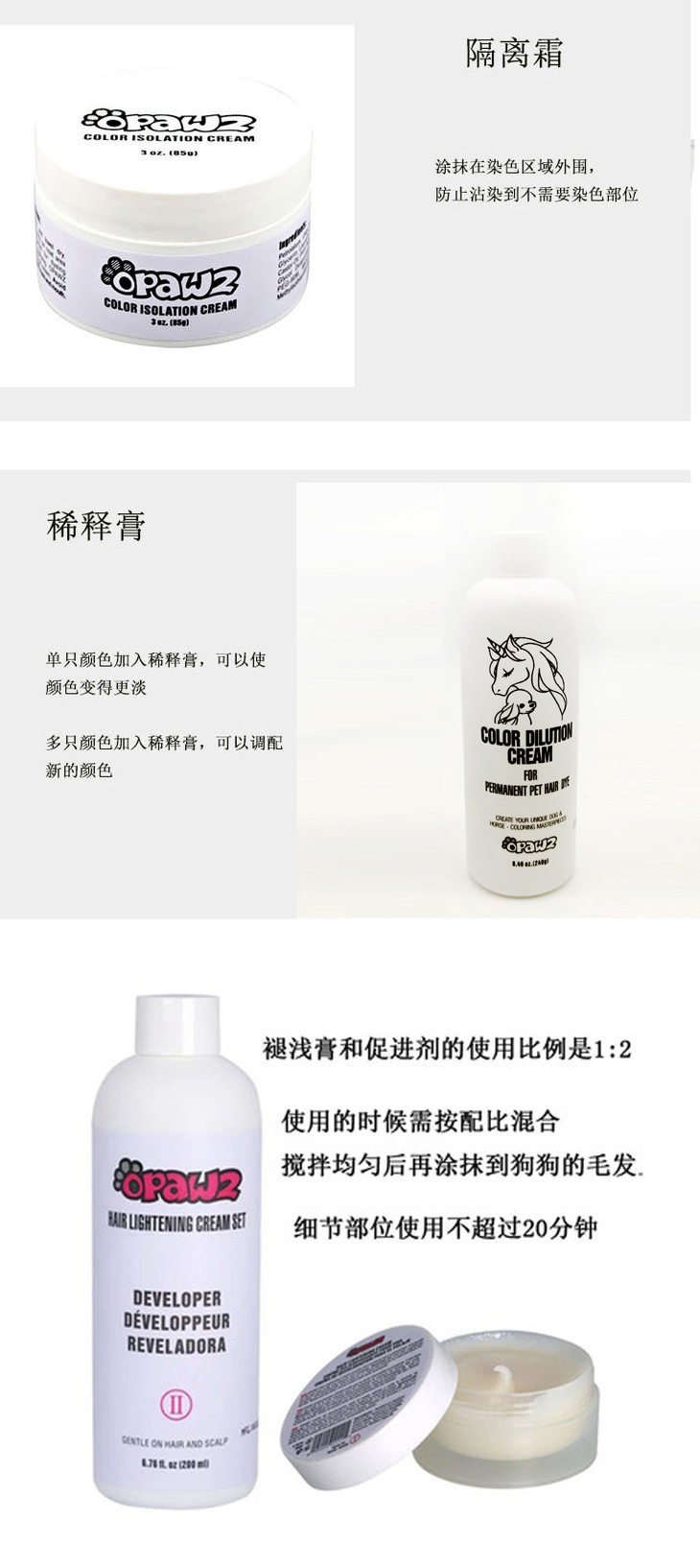 新款 OPAWZ小爪印快染彩盒猫咪狗狗宠物持久染色剂染色膏 117g /稀释膏/染黑色双只/隔离霜/褪浅膏