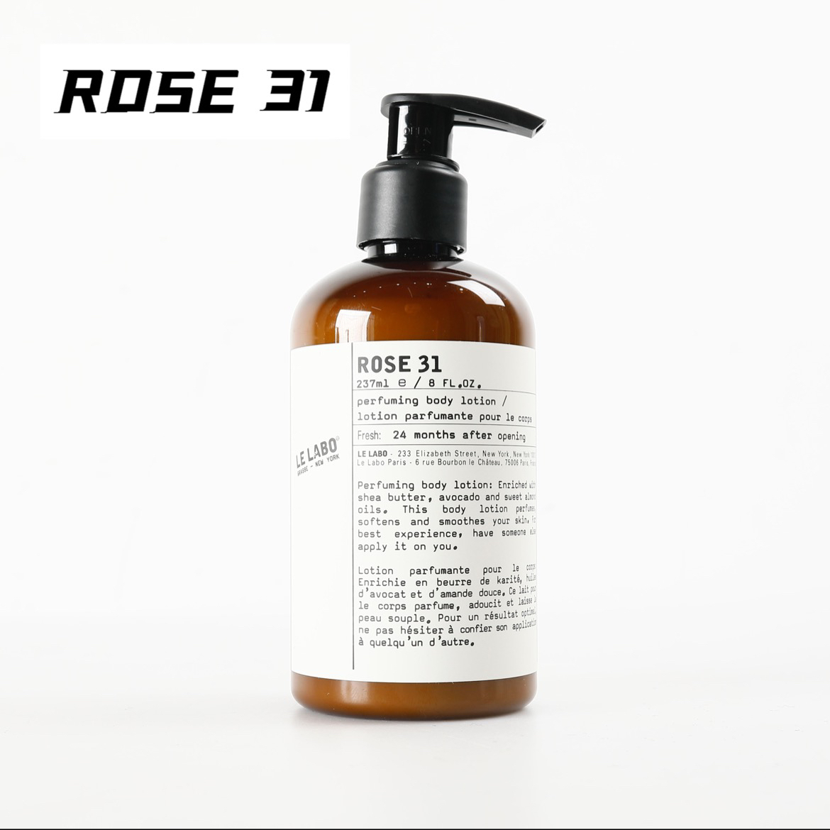 Le Labo 这款身体乳于纽约精制而成 蕴含该品牌畅销的 “Rose 31” 玫瑰香氛 这种香调由温暖的茴香和雪松与千叶玫瑰和格拉斯玫瑰花香混合而成 它富含滋养的乳木果油 白茶和橄榄叶萃取物 令肌肤保持爽滑柔软