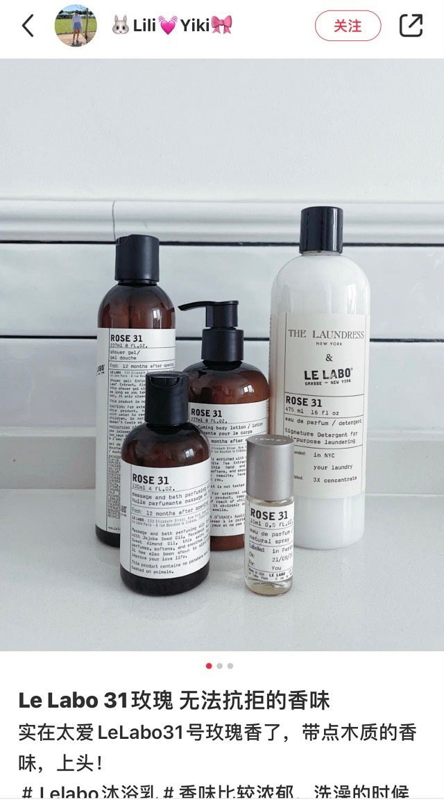 Le Labo的No.1款香水 借玫瑰之名 以名贵的百瓣玫瑰和大马士革玫瑰为主料 占整个香水一半以上分量 这款Rose31 给我感觉刚烈与柔美兼顾 是一款男人也能驾驶的玫瑰香氛