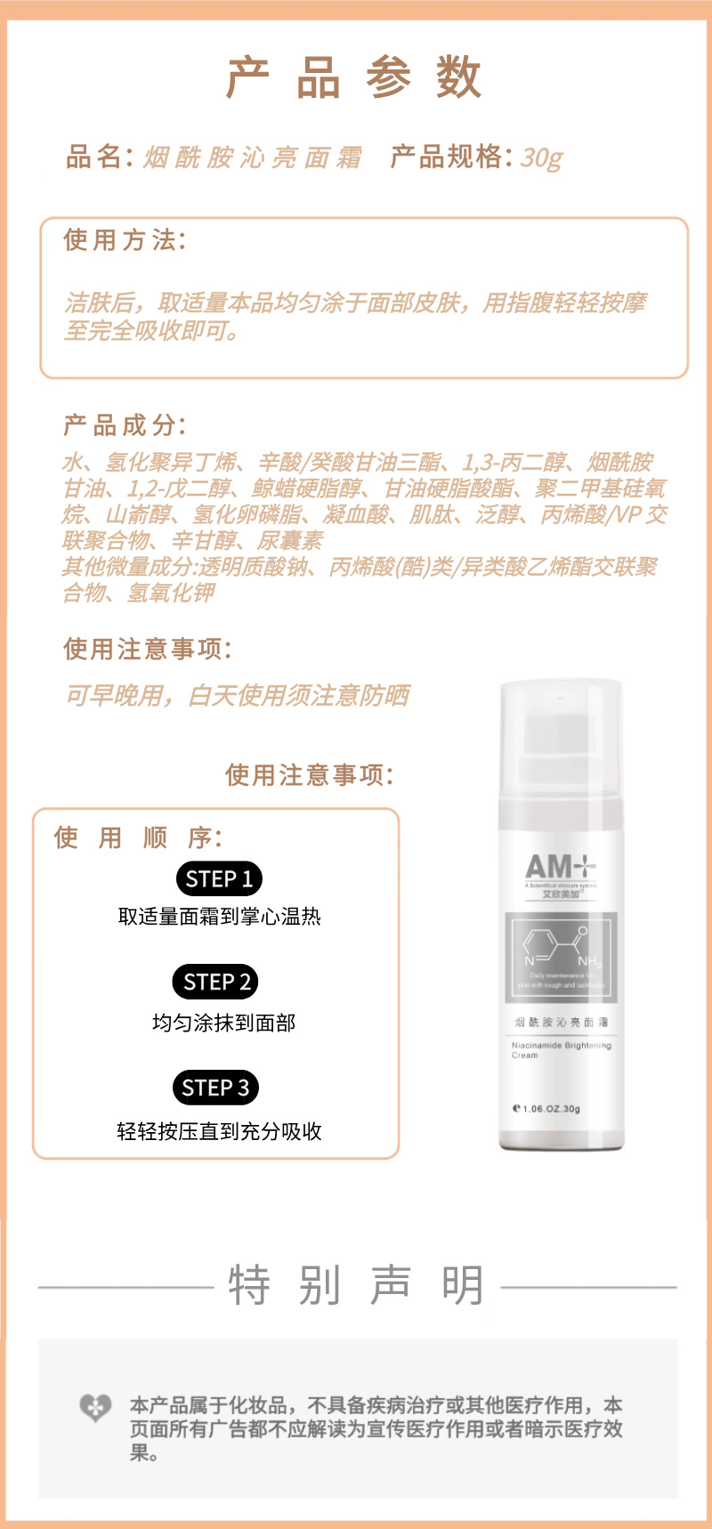 若您处于手术、放化疗等皮肤屏障脆弱期间,不建议使用本美白产品,以基础保湿修护为主;康复期或敏弱不耐受肤质使用前,务必先在耳后或手臂内侧做皮肤敏感测试,无红肿瘙痒等不适再上脸。