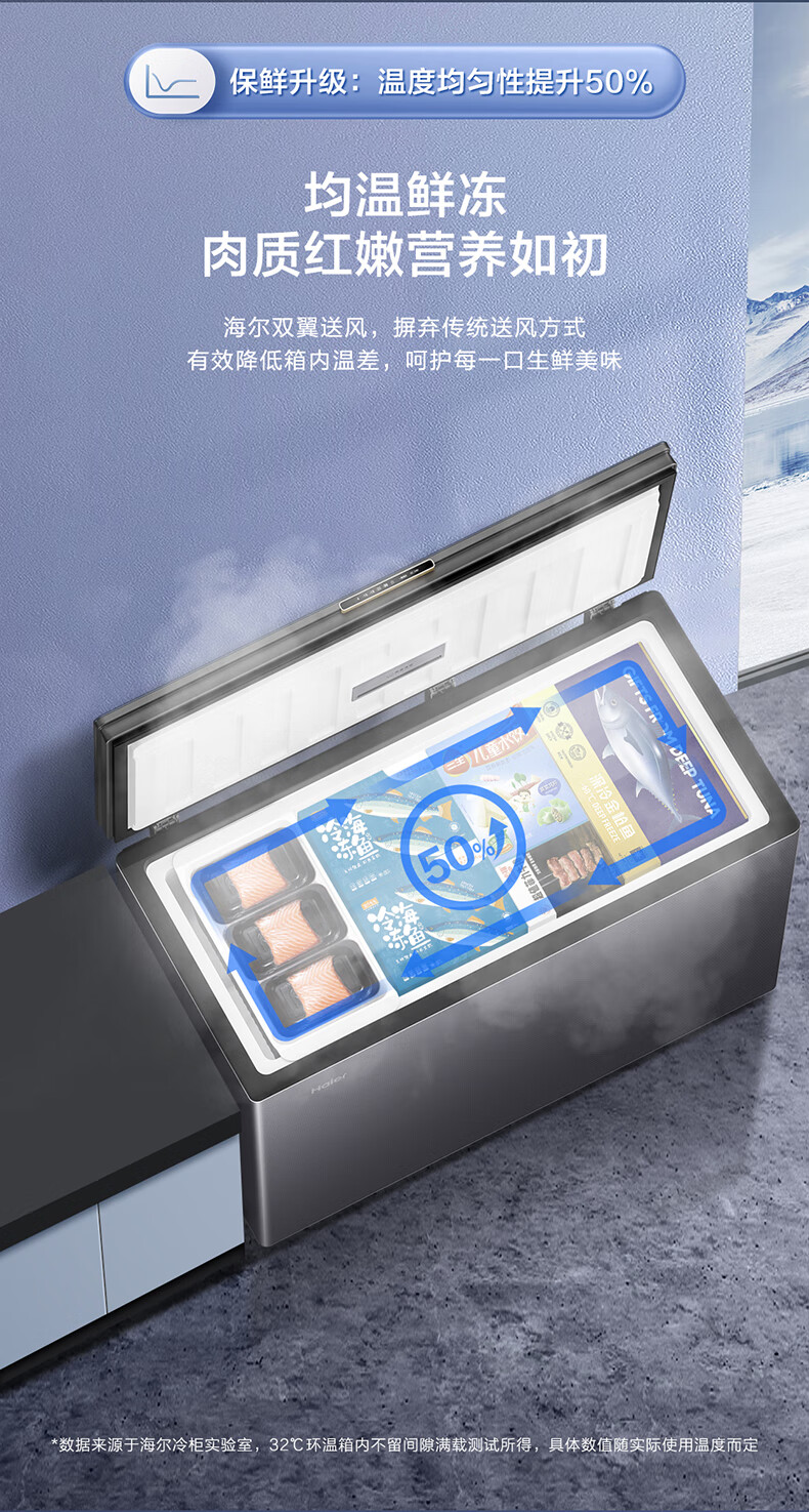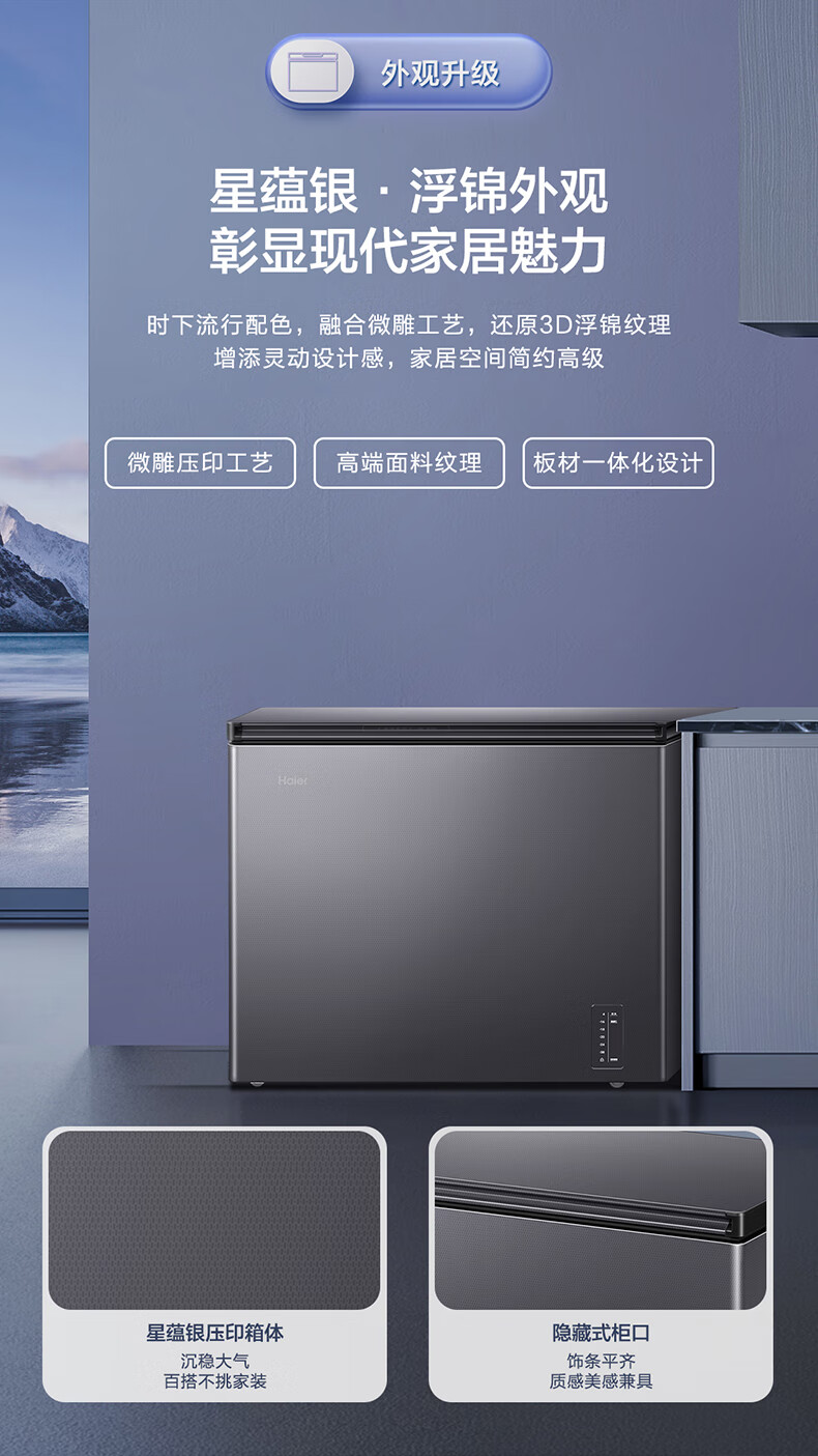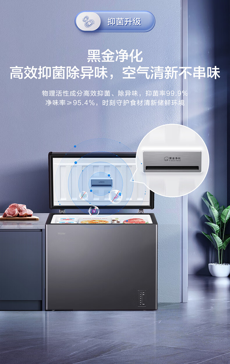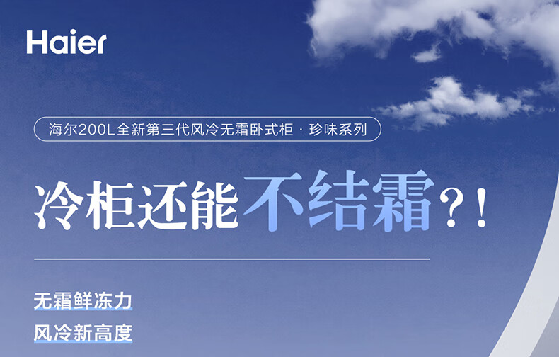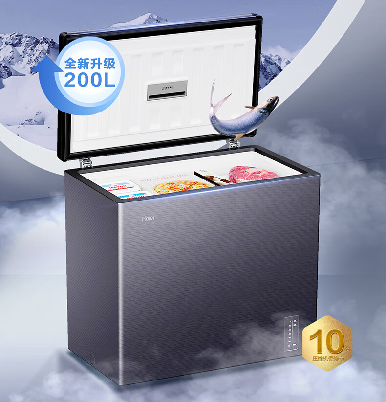 海尔200L风冷无霜卧式家用冰柜 冷藏大冷冻 冰柜BC/BD-200WGHESM