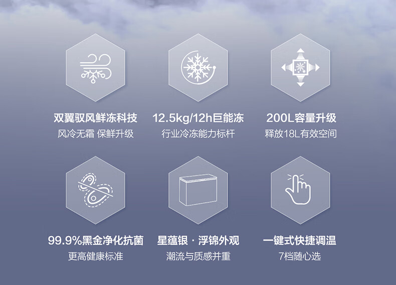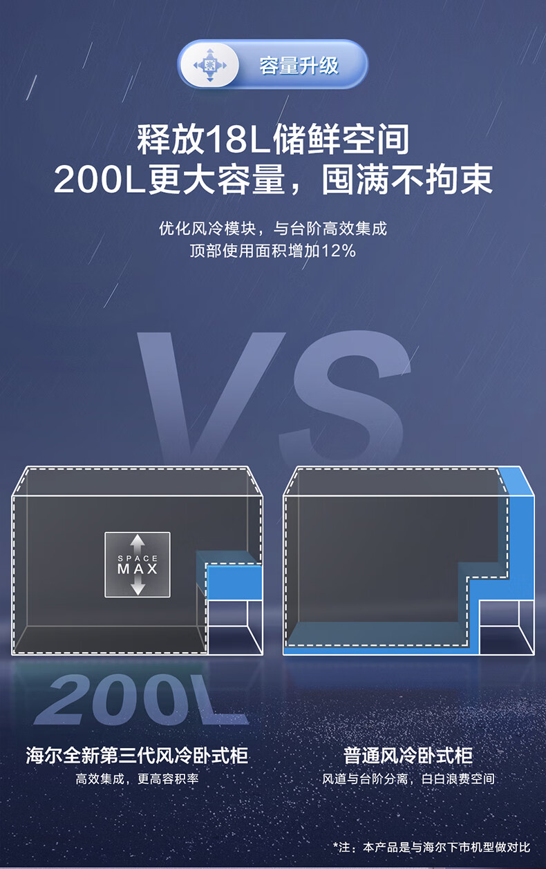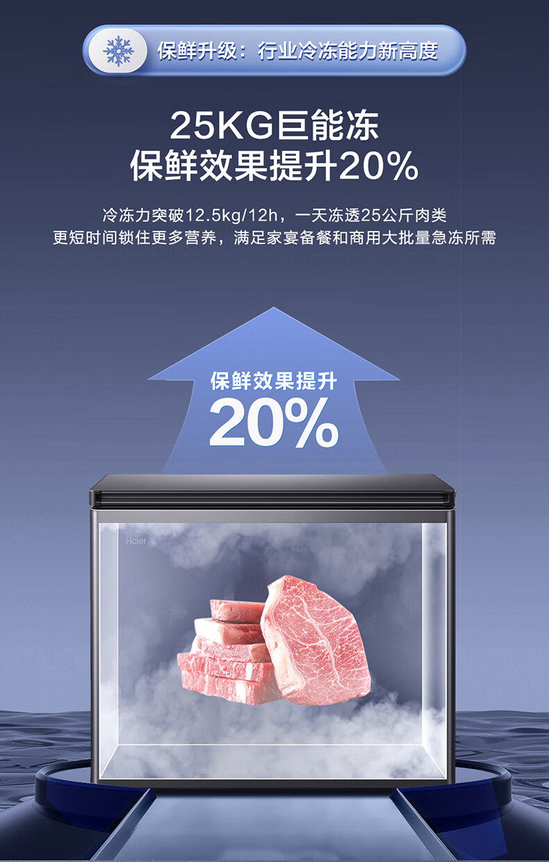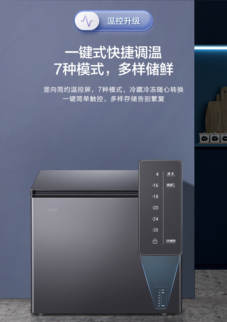 海尔200L风冷无霜卧式家用冰柜 冷藏大冷冻 冰柜BC/BD-200WGHESM