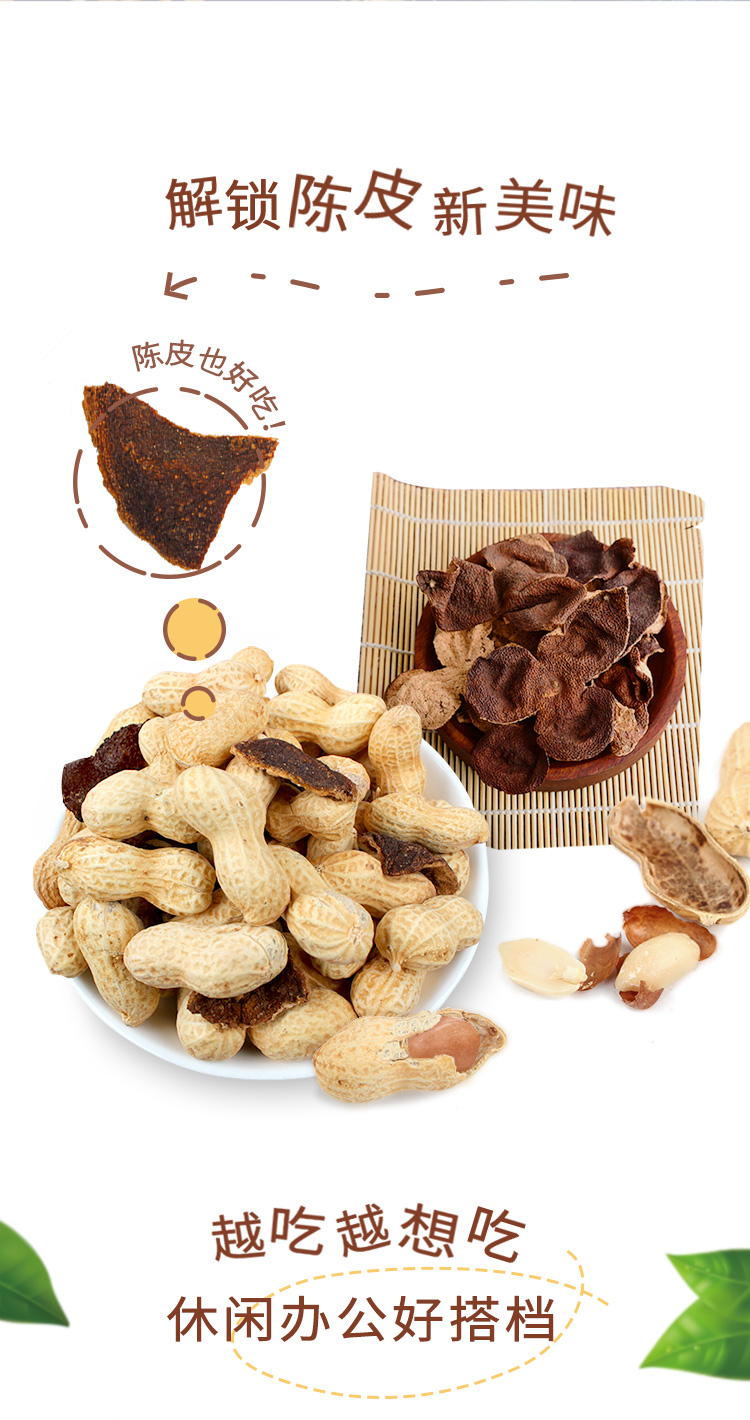 柑天下陈皮花生正宗广东新会特产冠饮山国陈皮味咸干带壳花生水煮熟花生米