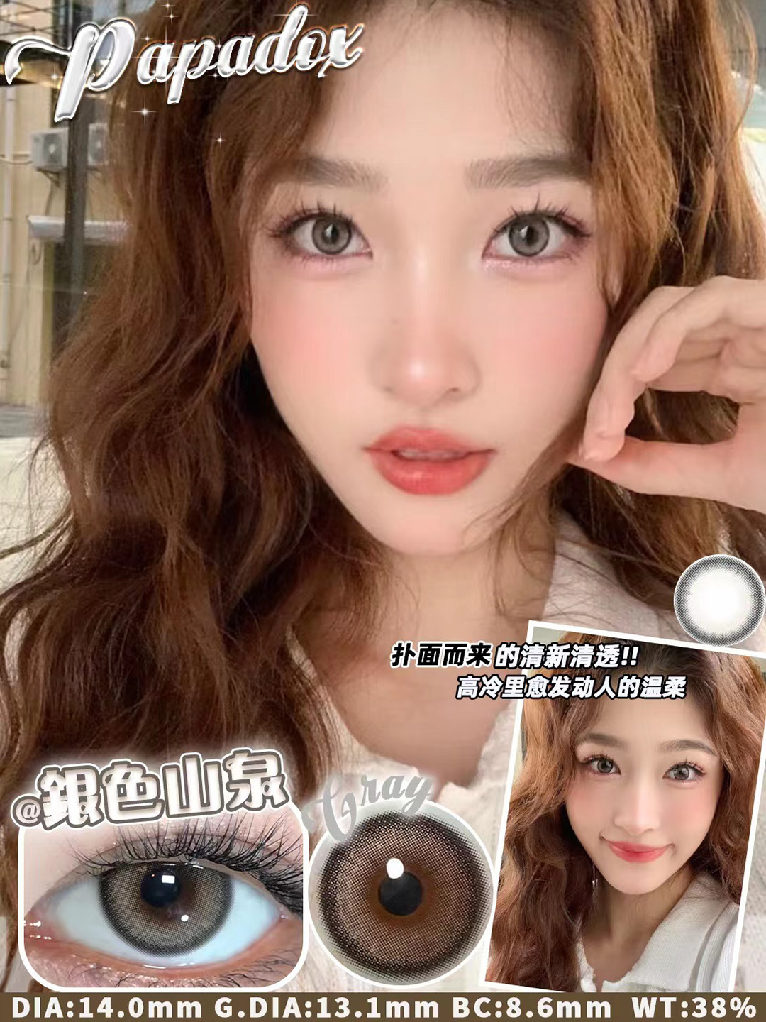 Papadox 月抛 来古冰川/光影皮革/萤火蜜蜡 直径14.2 着色13.6 含水38% 基弧8.6