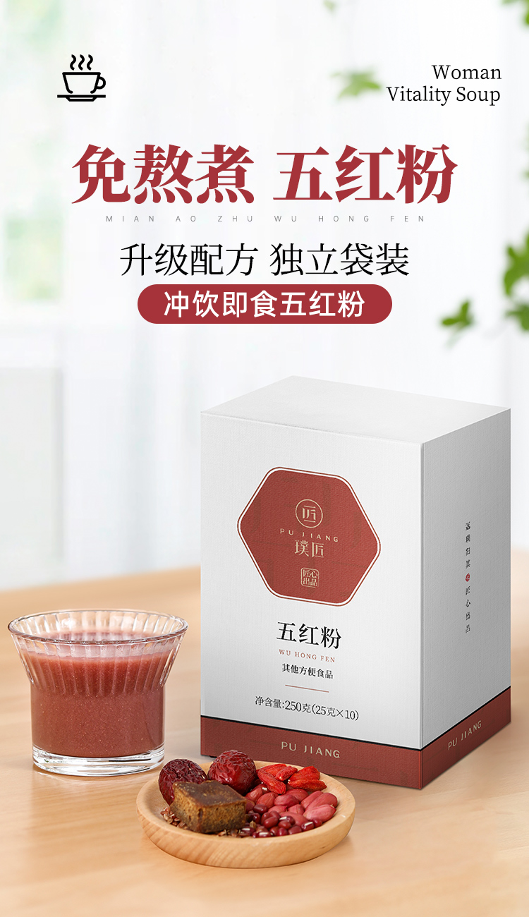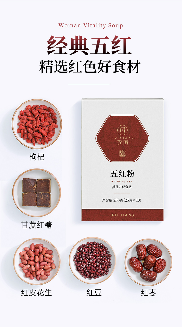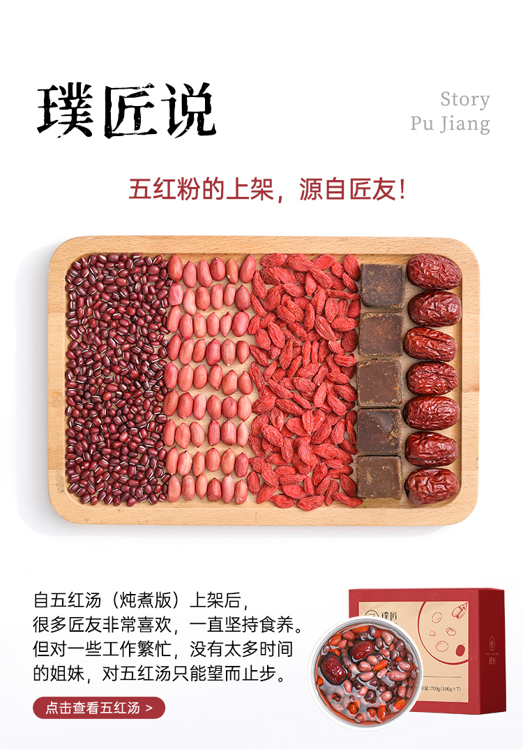 璞匠五红粉免煮红豆红枣粉红糖山药粉枸杞花生莲子粉冲饮即食代餐