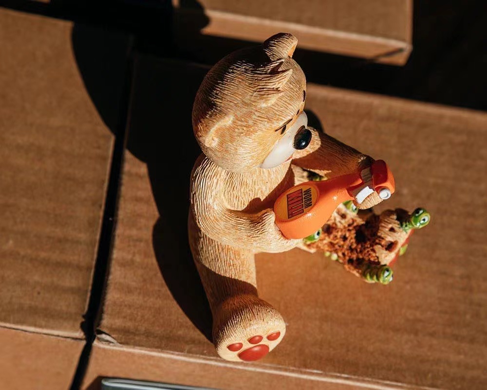 以其独特的“变态”设计而著称,搭配各种闪闪发光的配件,如手枪、草帽和眼镜等,让这款摆件熊更具个性和时尚感。无论是作为桌面摆件、书架装饰,都能为您的空间增添一份趣味和活泼的氛围。