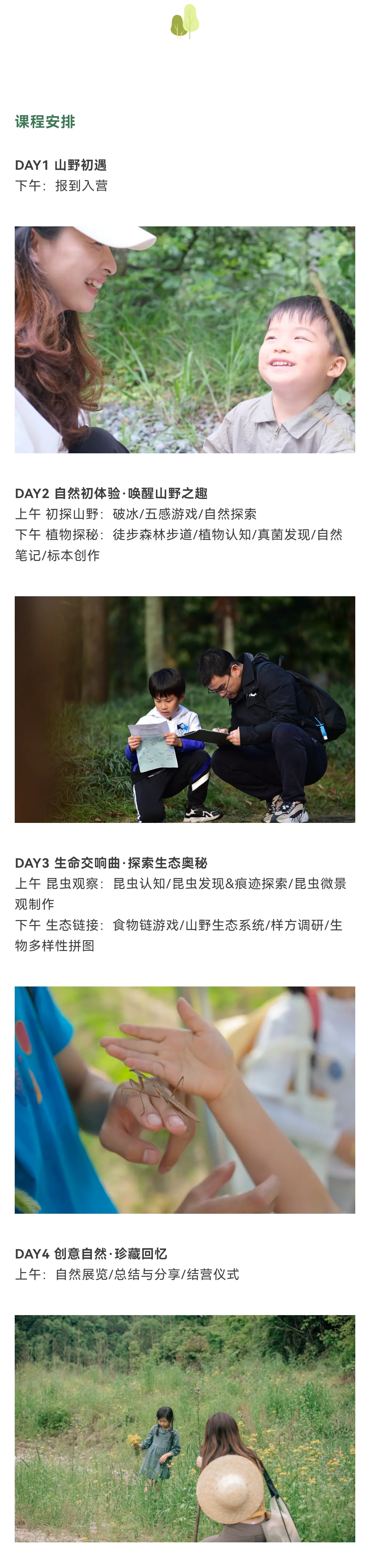 7、精配师资:课程由专业的自然教育导师带领,配备经验丰富的自然教育讲师和生活助教老师,确保教学辅助和生活关照到位。