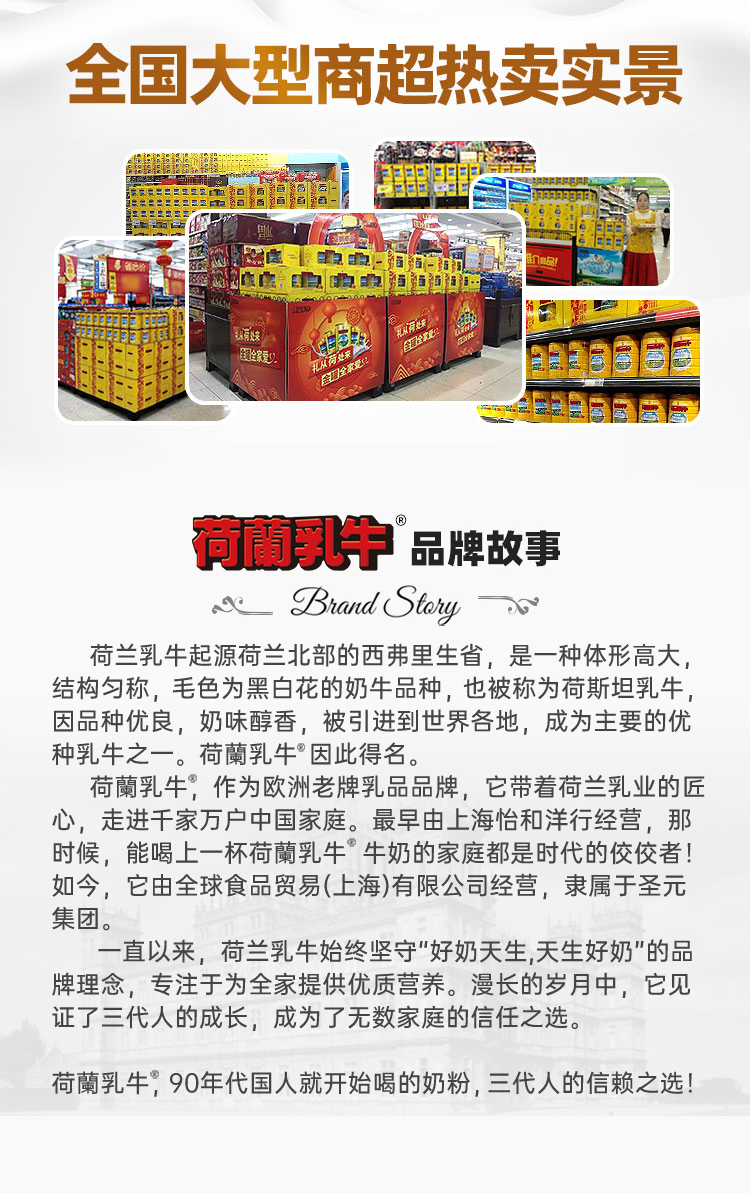- 荷兰乳牛品牌于1990年进入中国,相伴31年始终致力于为更多家庭奉上优种荷兰乳牛带来的营养与美味。秉承“珍选至纯营养,传承经典醇香”的理念,打造一个覆盖全人群、多品类、高品质的国际化品牌。