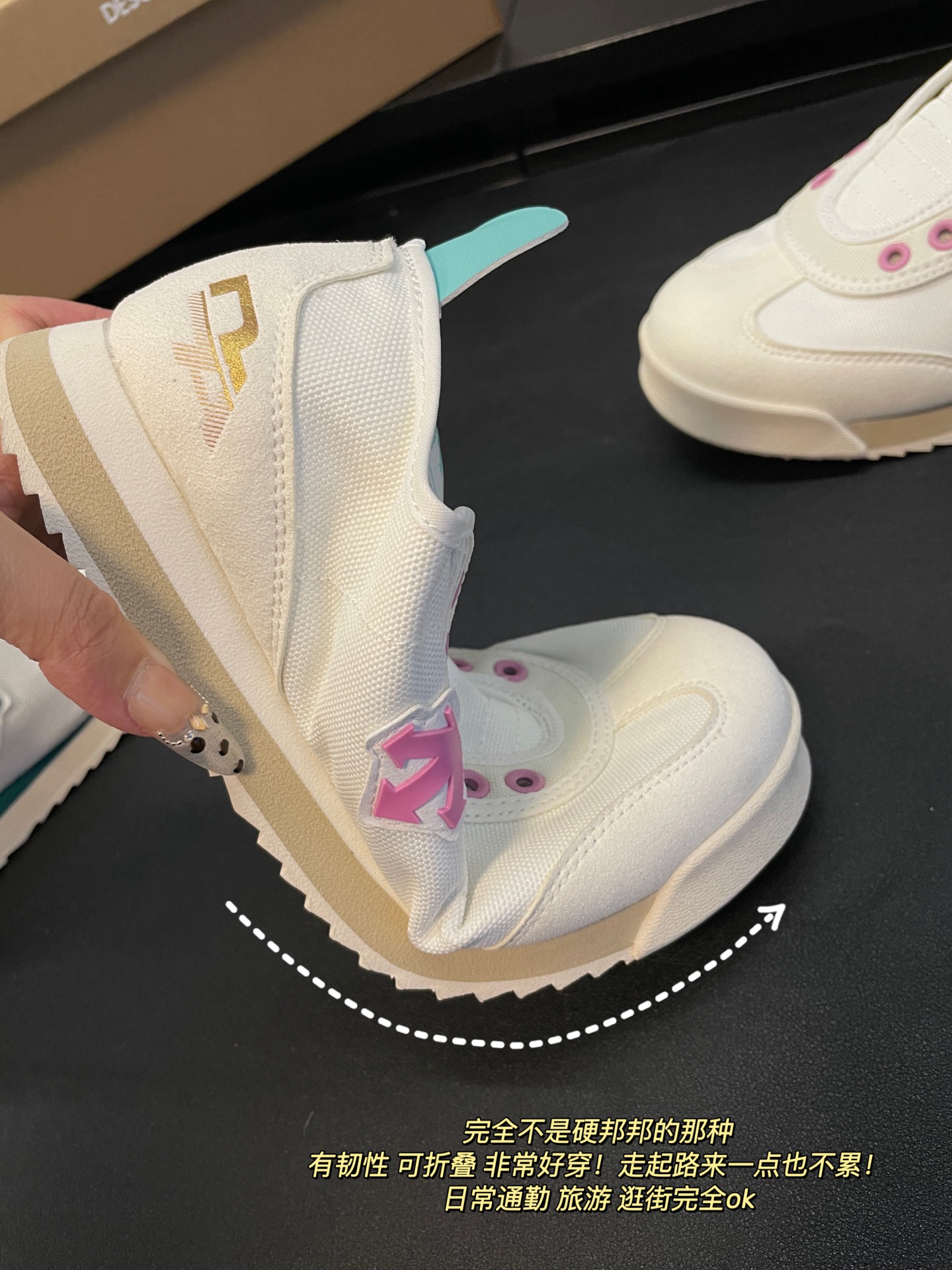 而且上脚脚感很轻便 穿上🈚负重感 久穿也不会累脚哈!!