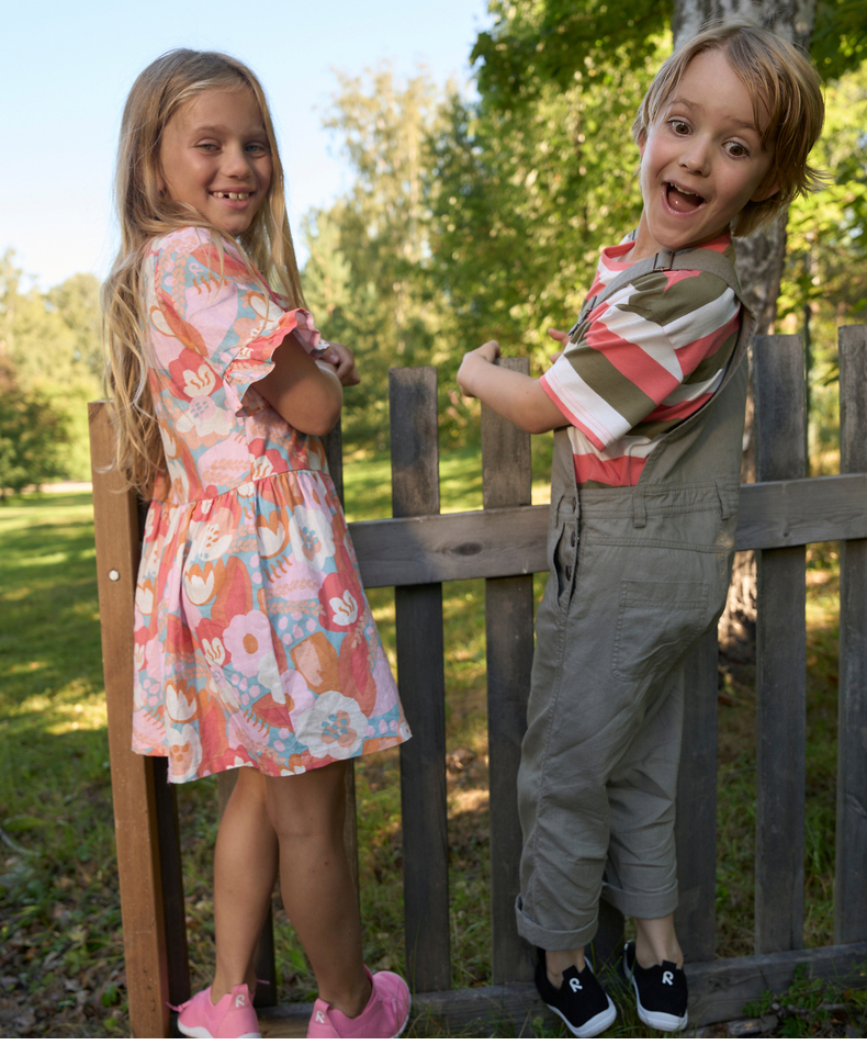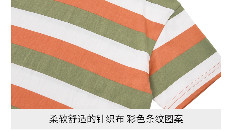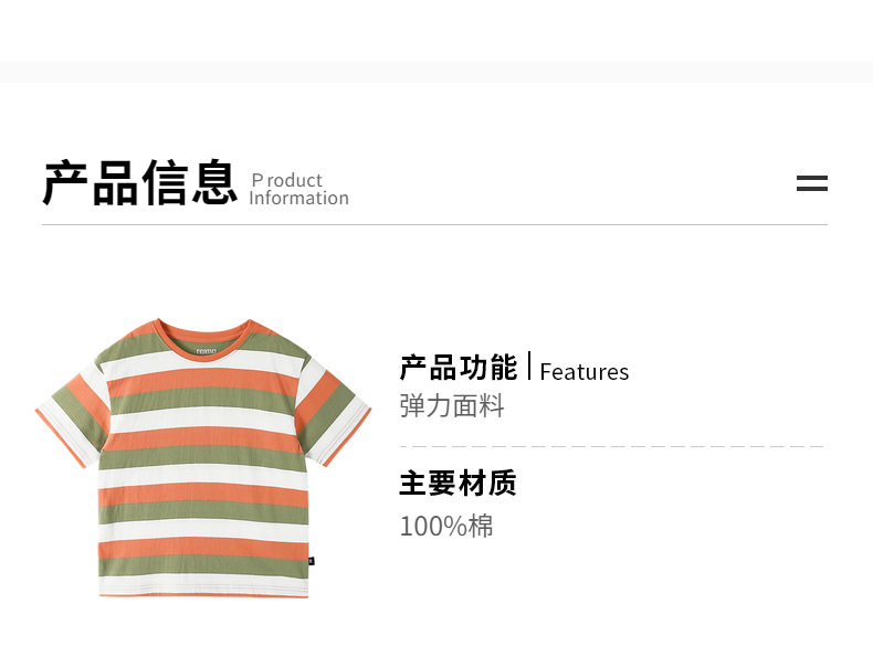 reima男女儿童大童T恤夏季新款宽松休闲时尚条纹圆领纯棉短袖