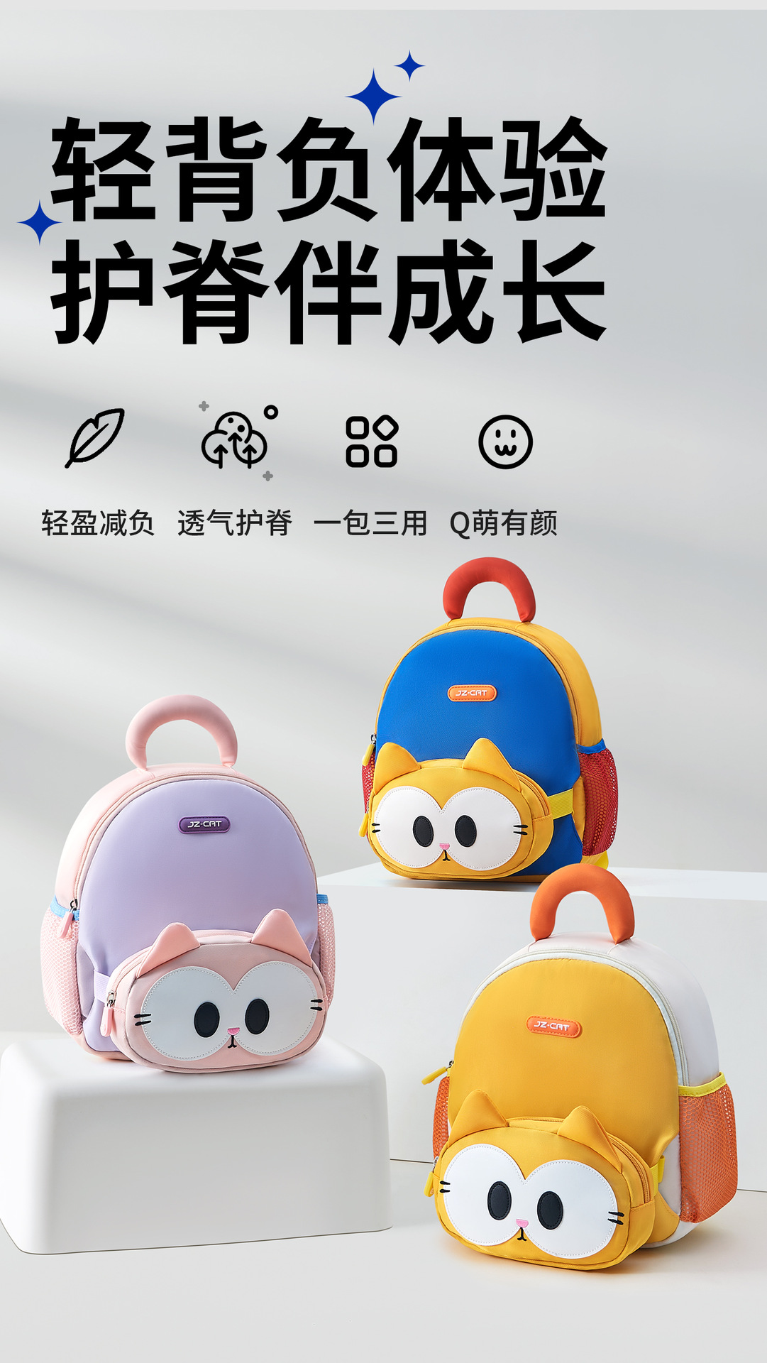 【轻量化包体设计!拒绝让孩子背负太重】九州猫新款幼儿园书包男1-3-6岁儿童卡通入园书包可爱女迷你背包。ry