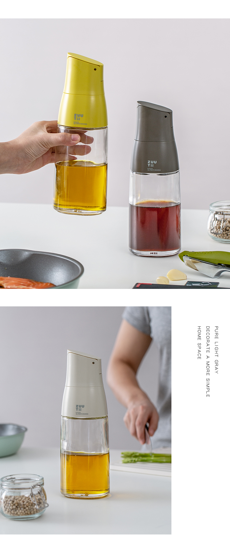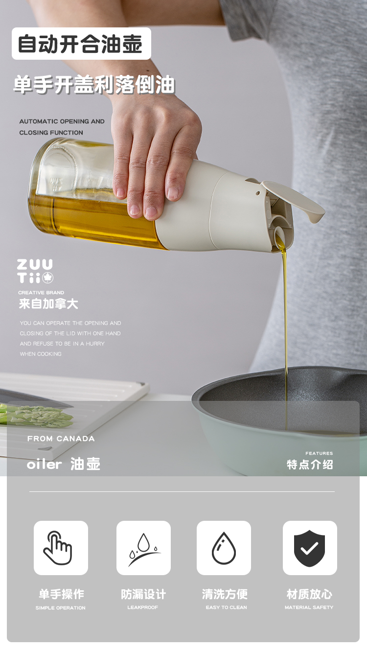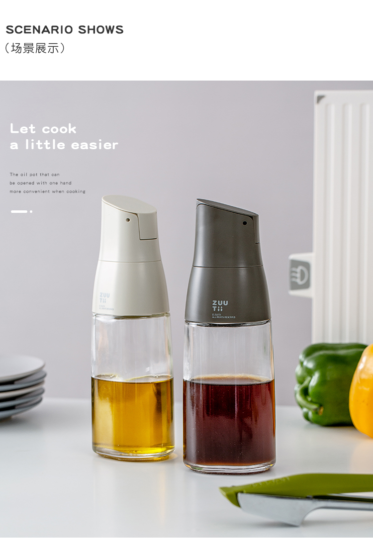 Zuutii油壶厨房家用自动开盖油罐调料瓶北欧风玻璃酱油瓶重力油瓶
