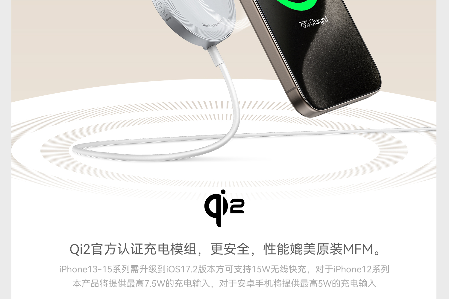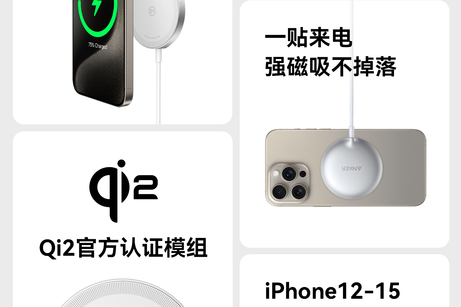 【热销】Anker安克MagGo15W磁吸PD无线快充Qi2认证TypeC充电器适用iPhone15苹果手机手表AirPods耳机 A25M0