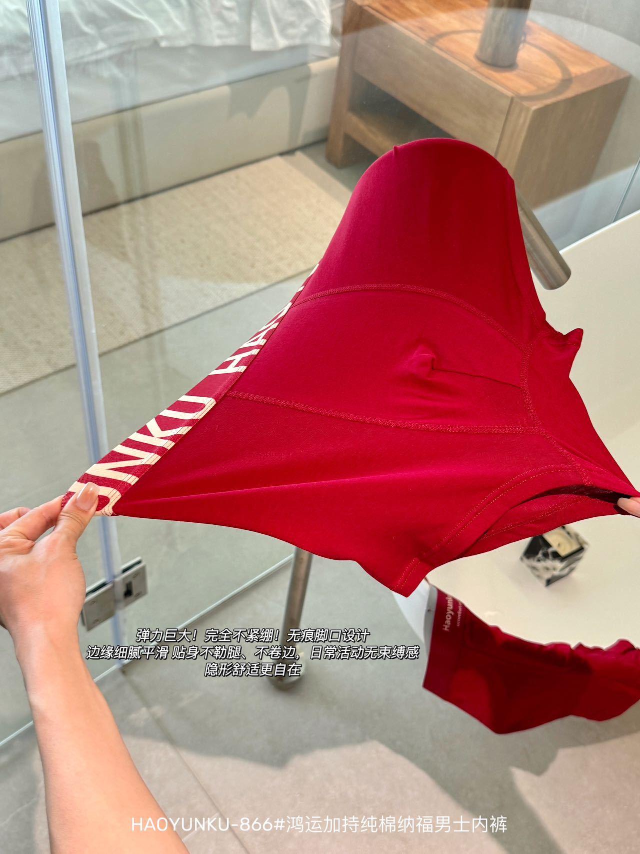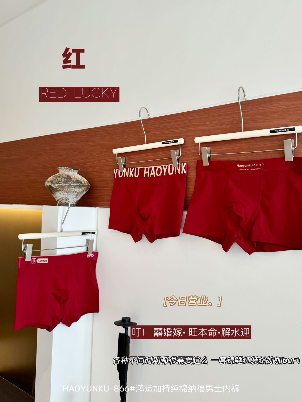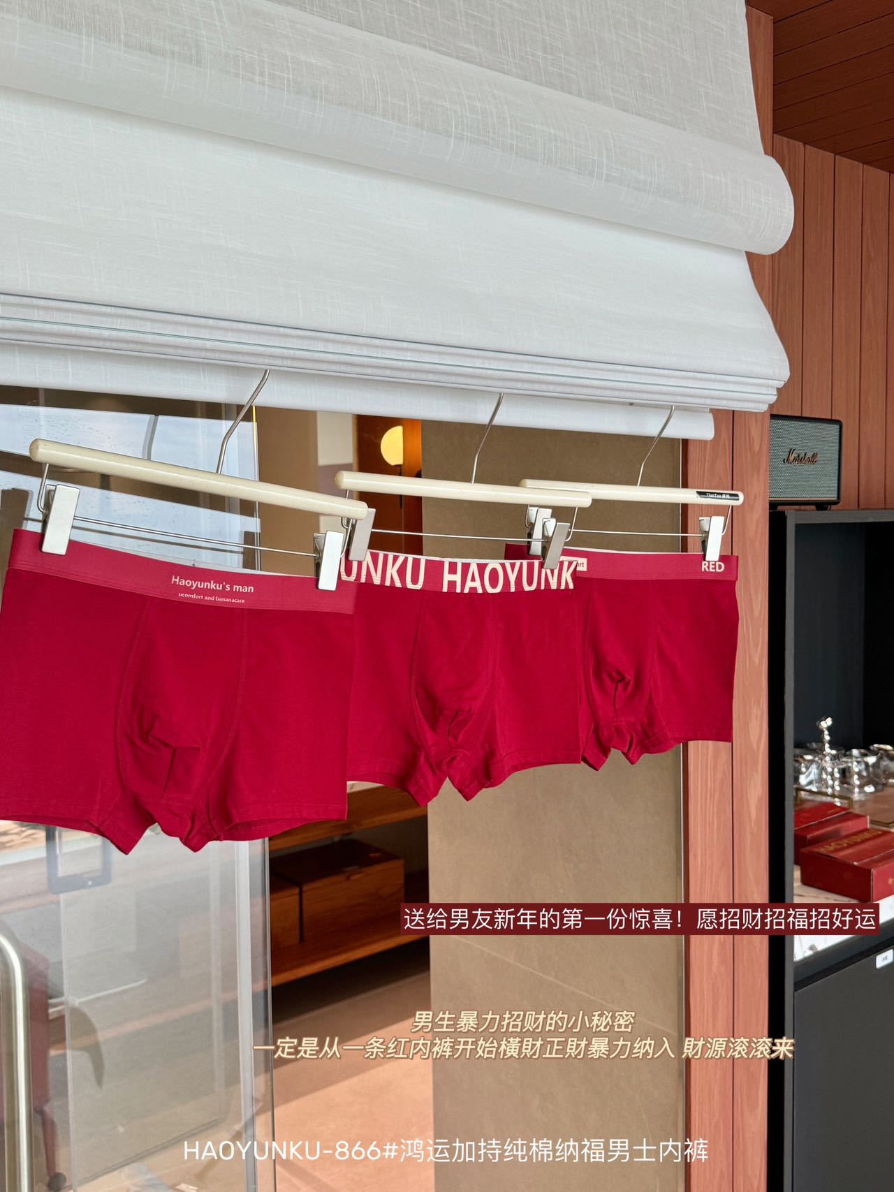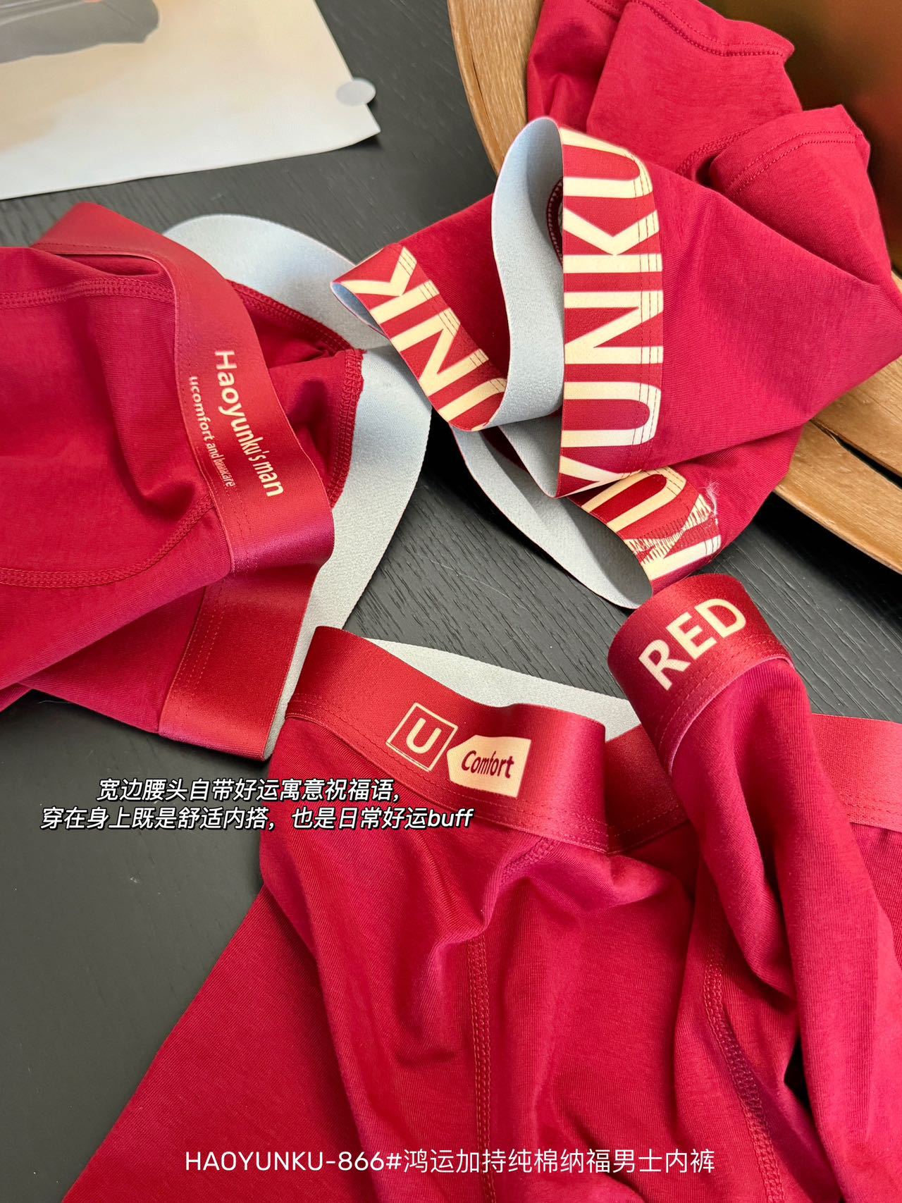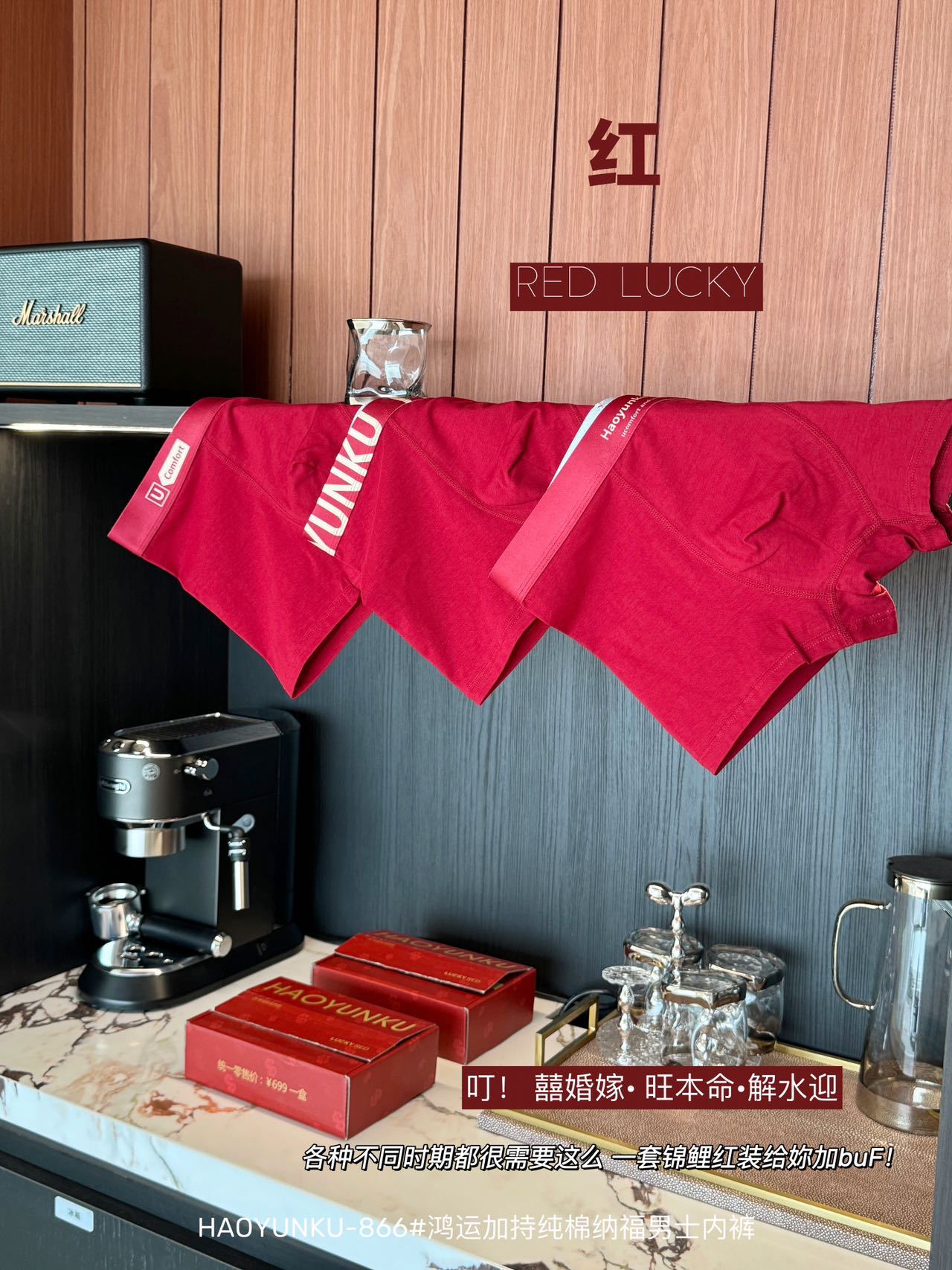 新年元旦【鸿运加持纳福❗️3件礼盒装男士内裤】 866#安可拉红男士内裤 大红底裆10A抑菌 本命年喜庆裸感透气运动青年大码平角裤