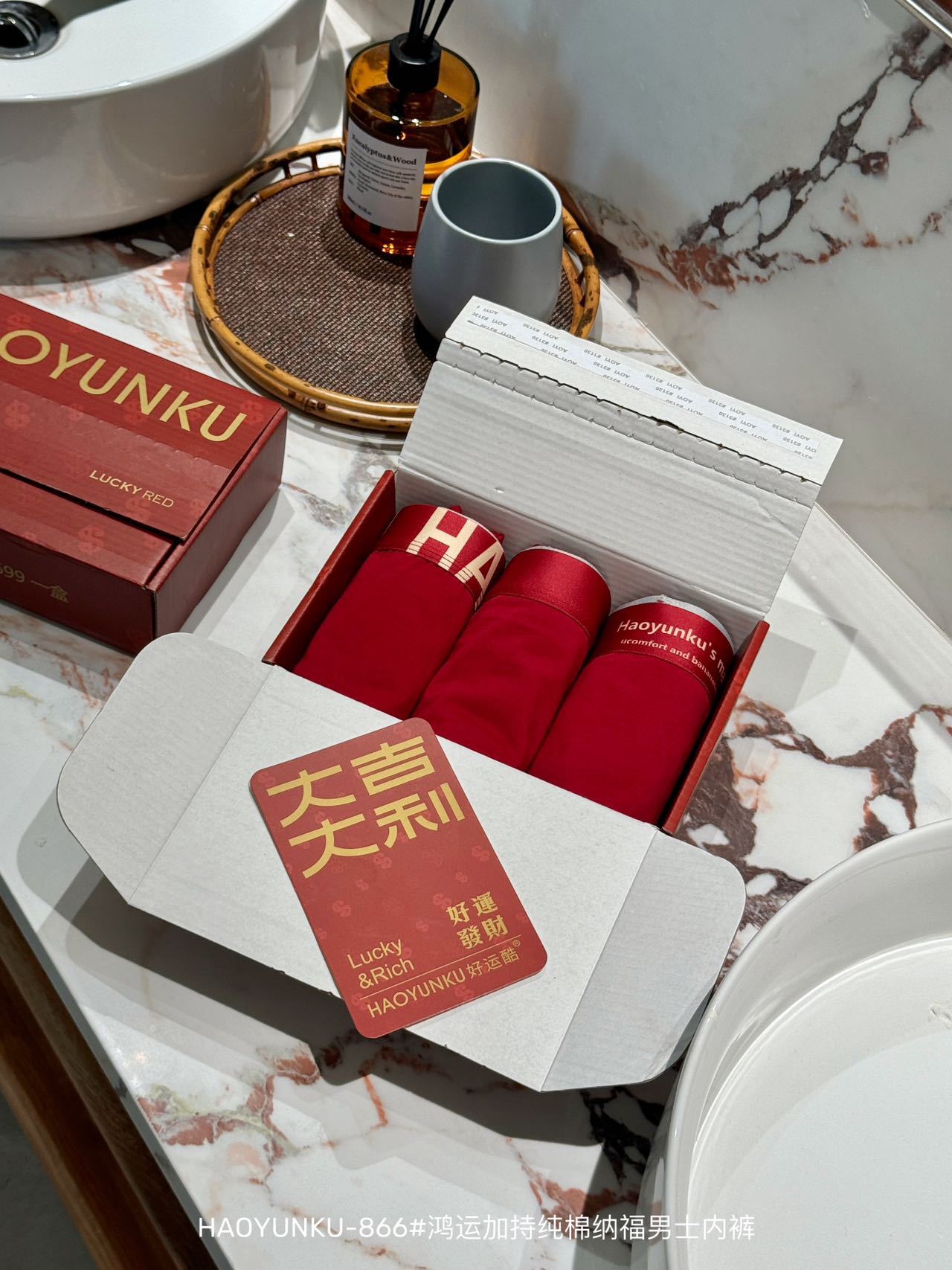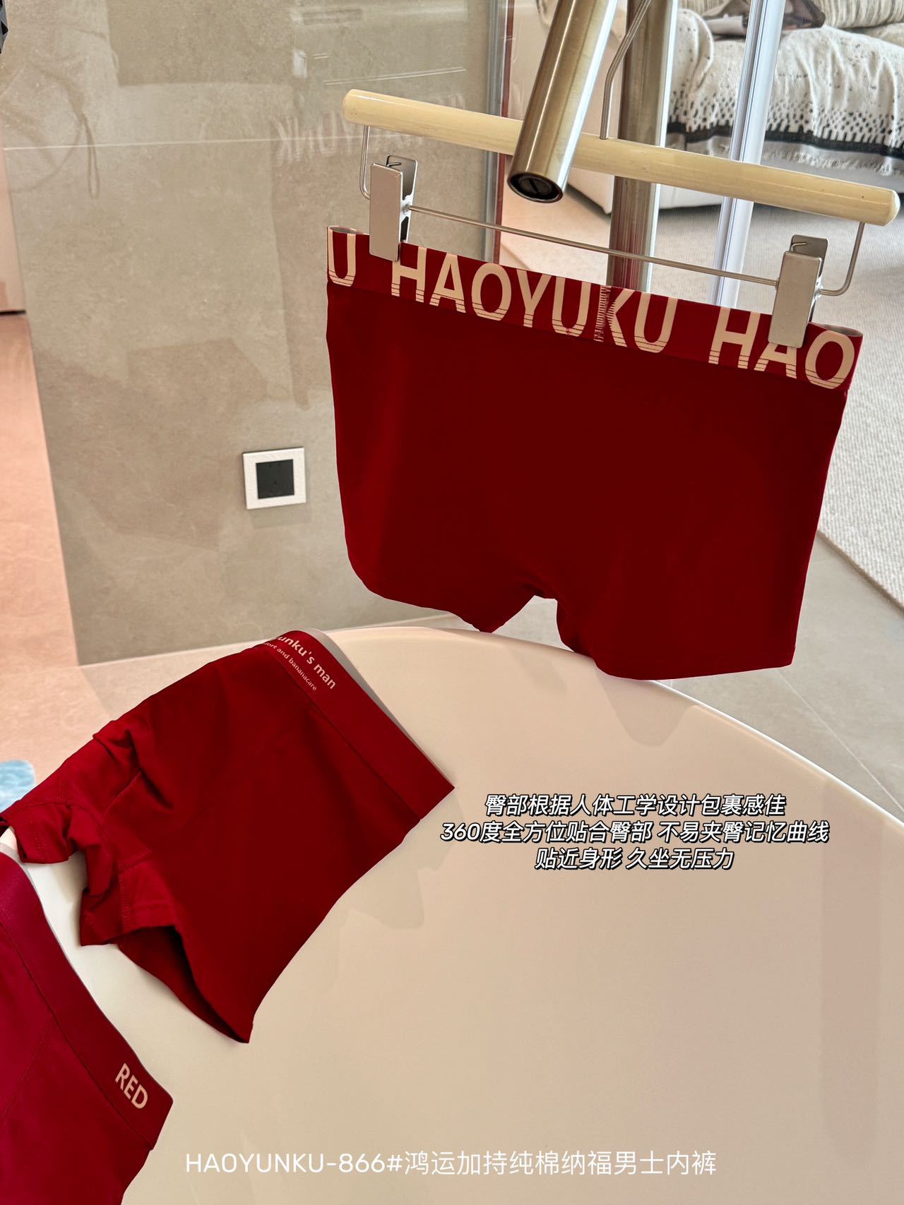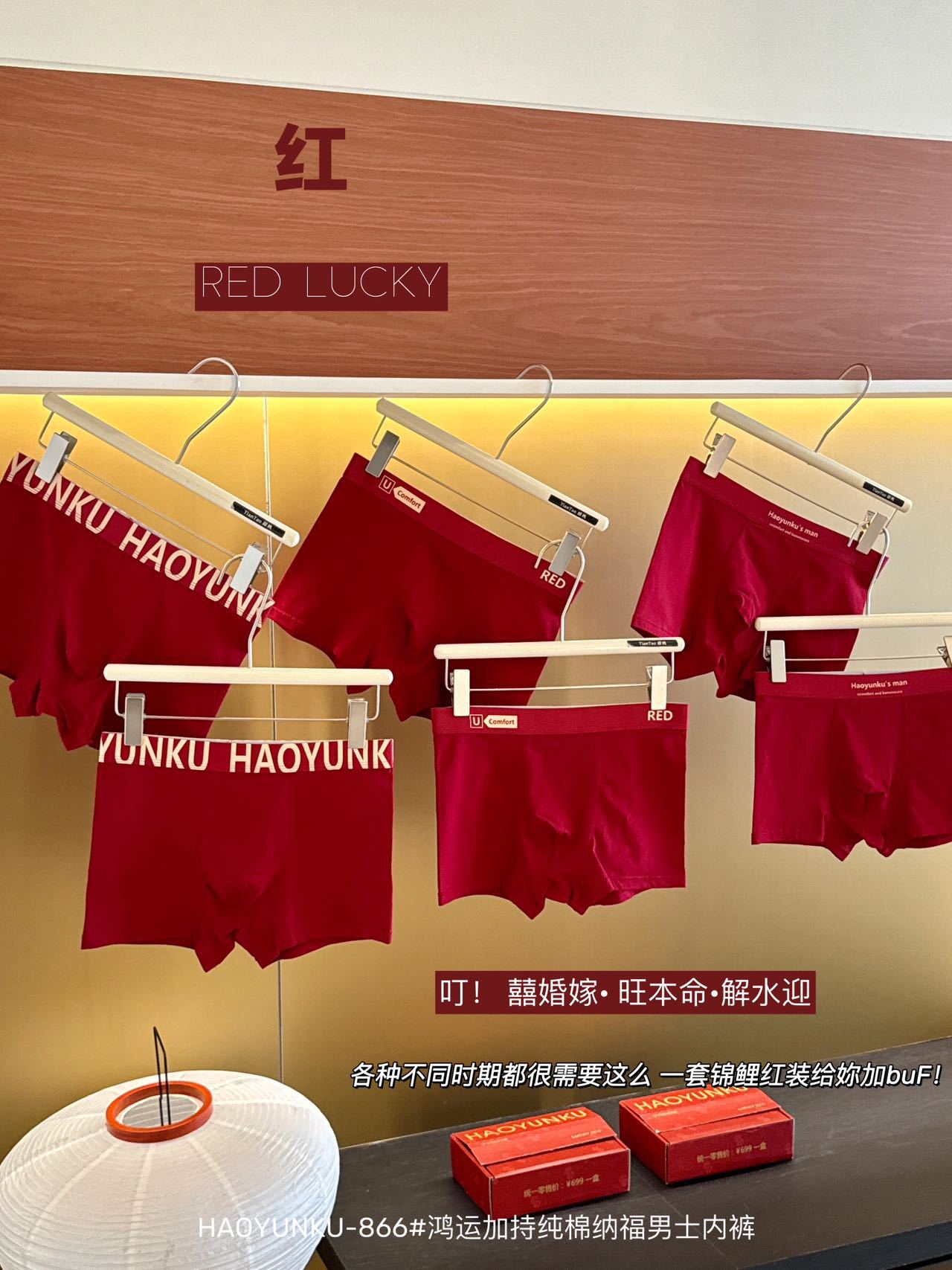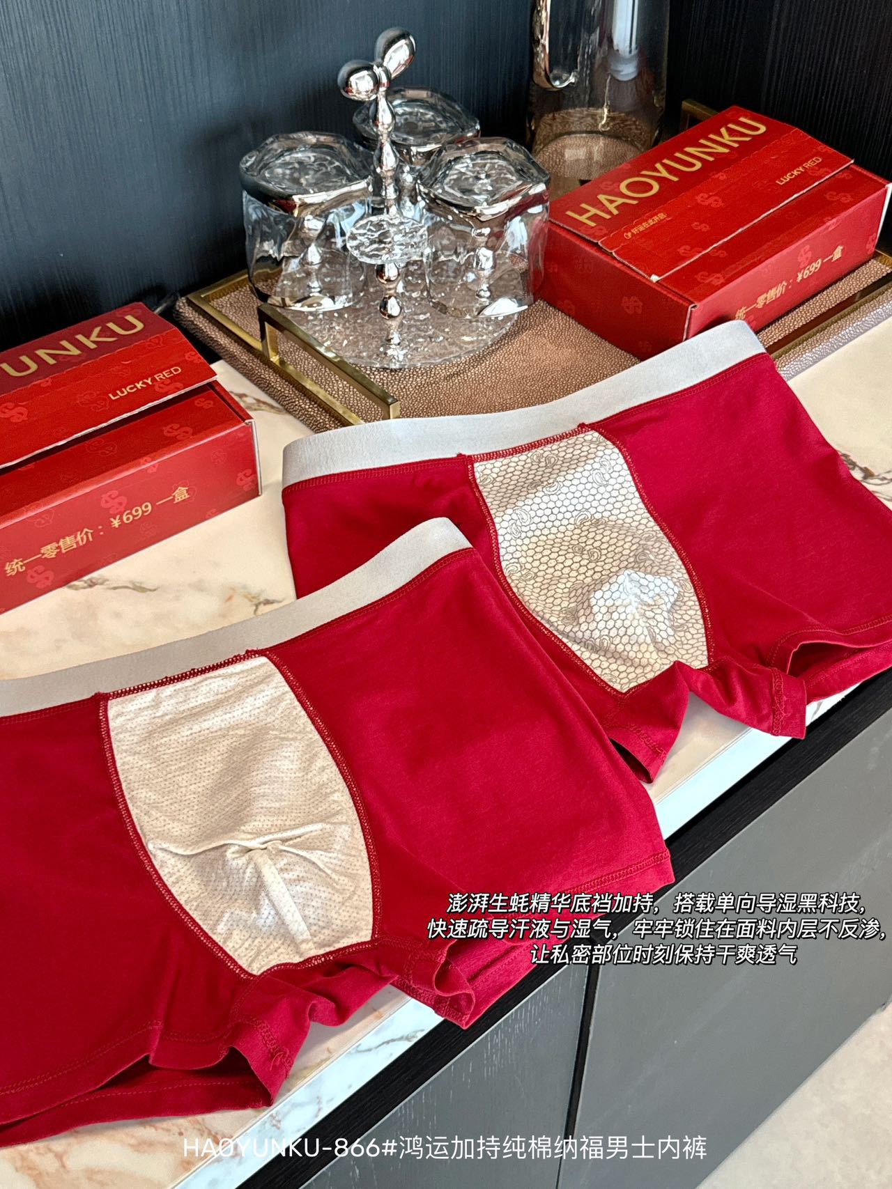 新年元旦【鸿运加持纳福❗️3件礼盒装男士内裤】 866#安可拉红男士内裤 大红底裆10A抑菌 本命年喜庆裸感透气运动青年大码平角裤