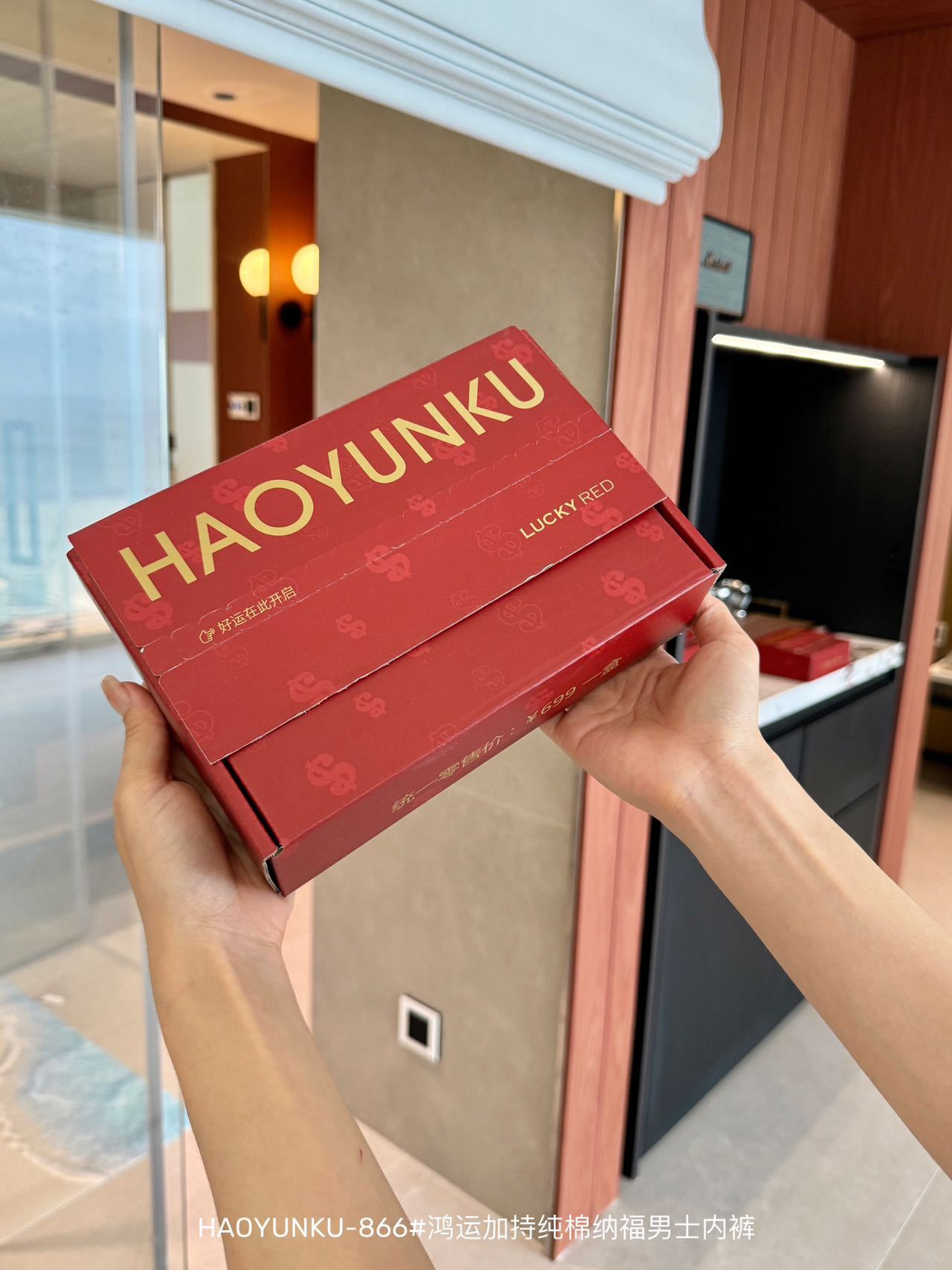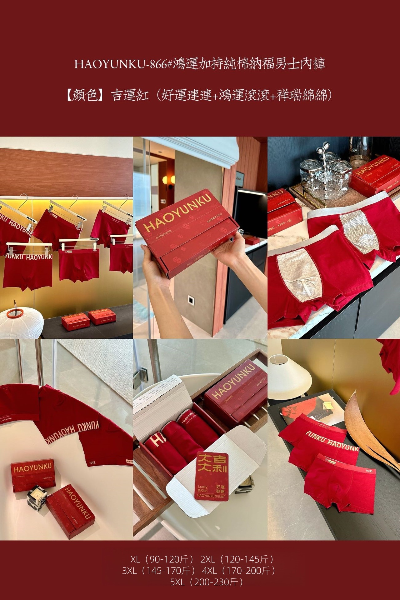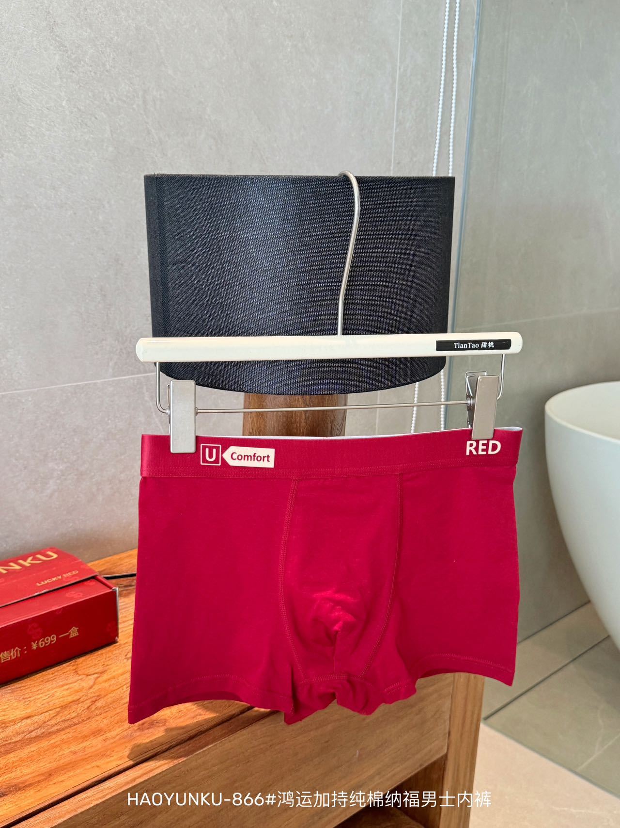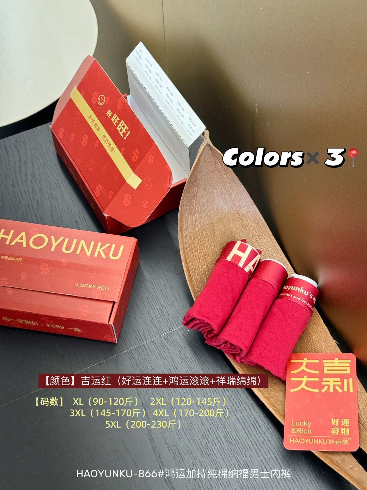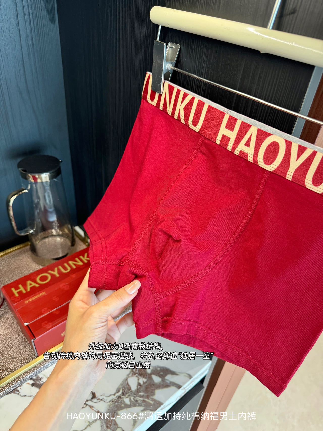 新年元旦【鸿运加持纳福❗️3件礼盒装男士内裤】 866#安可拉红男士内裤 大红底裆10A抑菌 本命年喜庆裸感透气运动青年大码平角裤