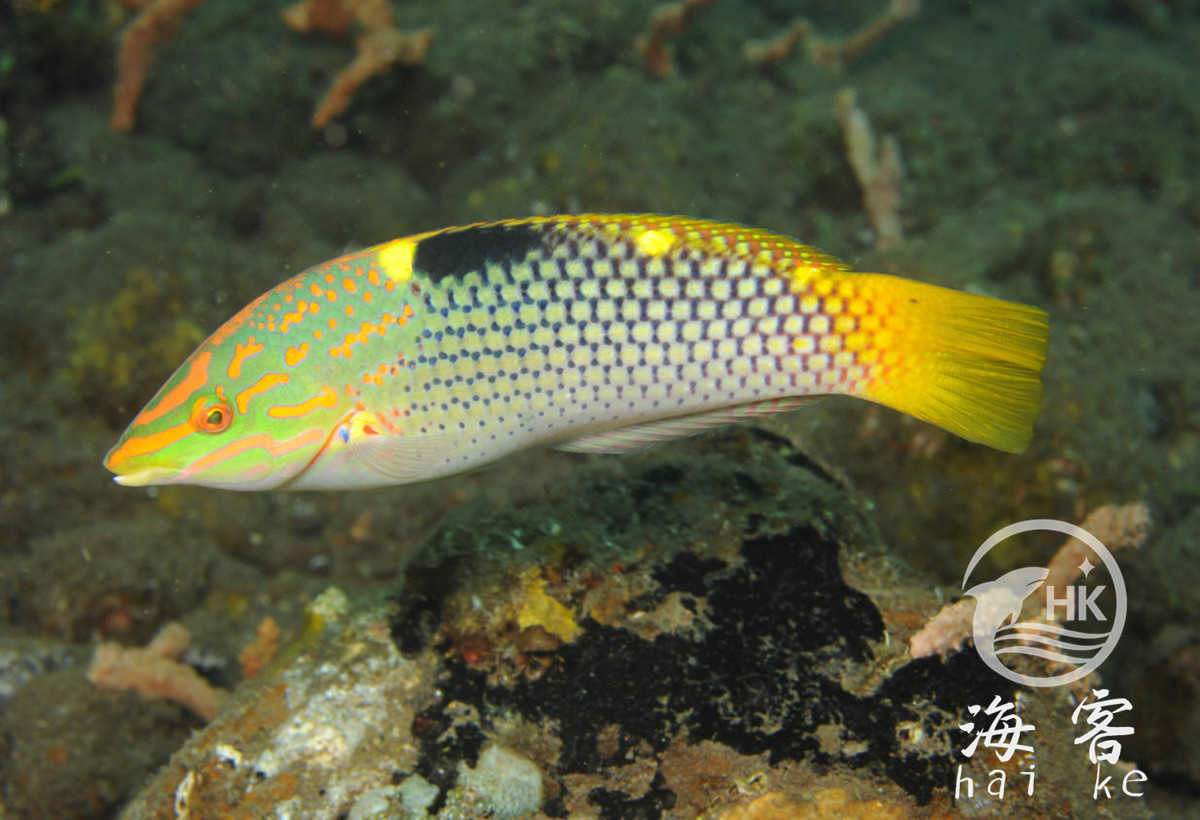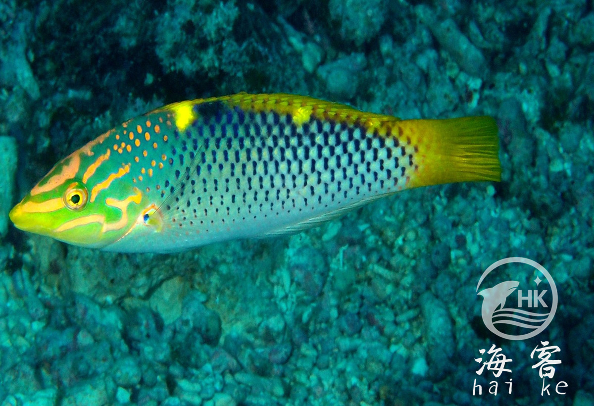 也叫云斑海猪鱼、花面龙、四齿仔、鹦仔、雷仔、鹦哥。成鱼,幼鱼是白色带有黑色条纹、斑点。成鱼后,颜色银色带有黑色棋盘状纹路。背鳍和尾巴是黄色,面部绿色带有粉红色条纹。