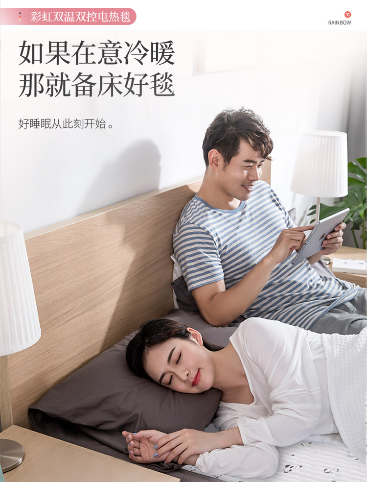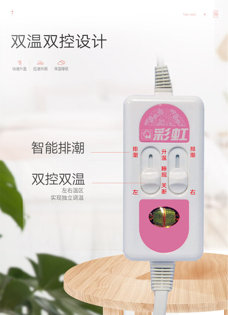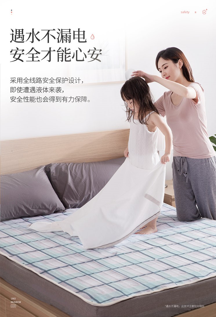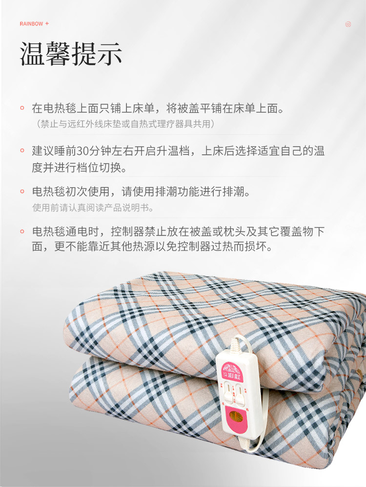 彩虹电热毯(长2.0*宽1.8)双控双温电热毯特大宽幅双人印花 1332【花色随机】