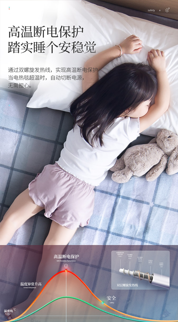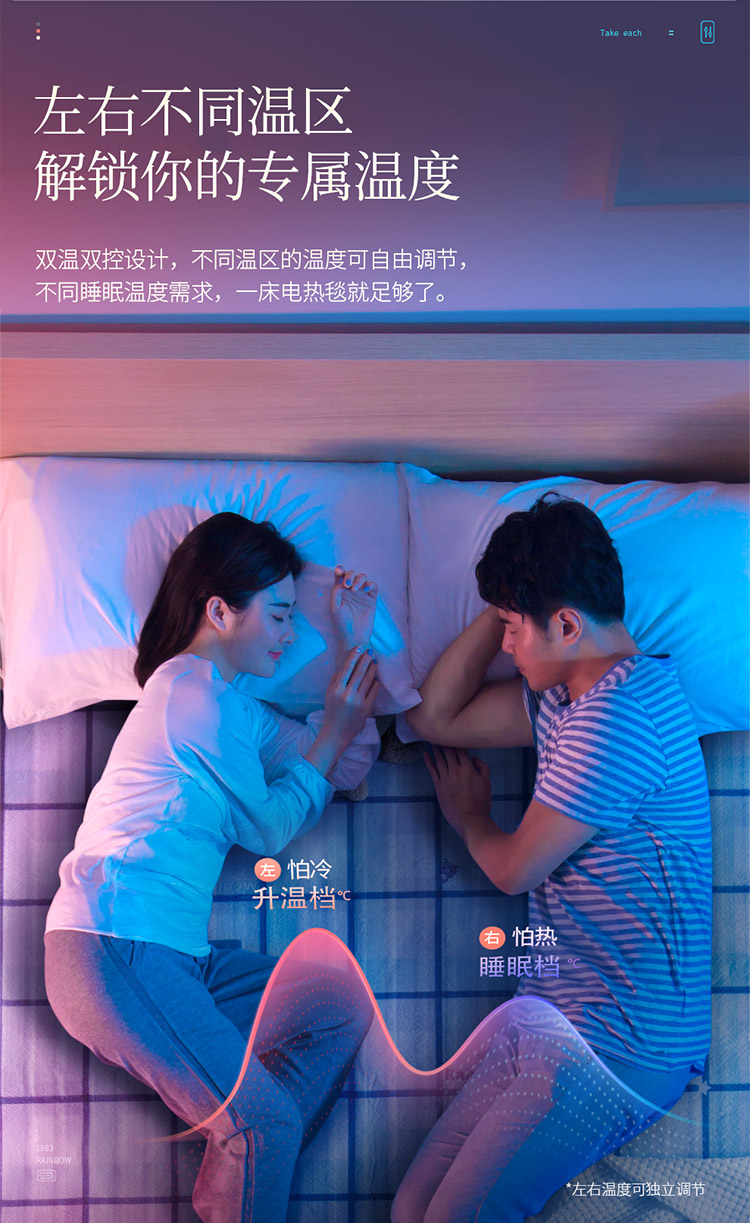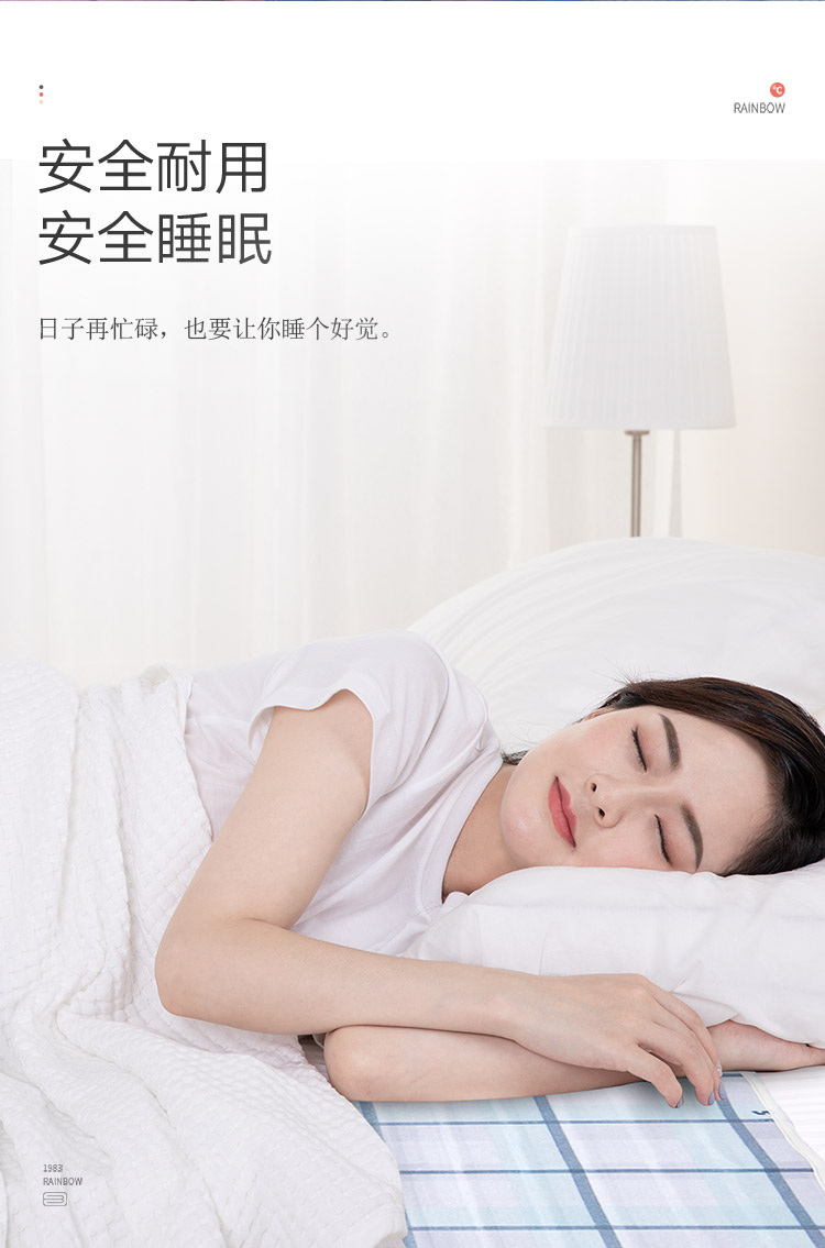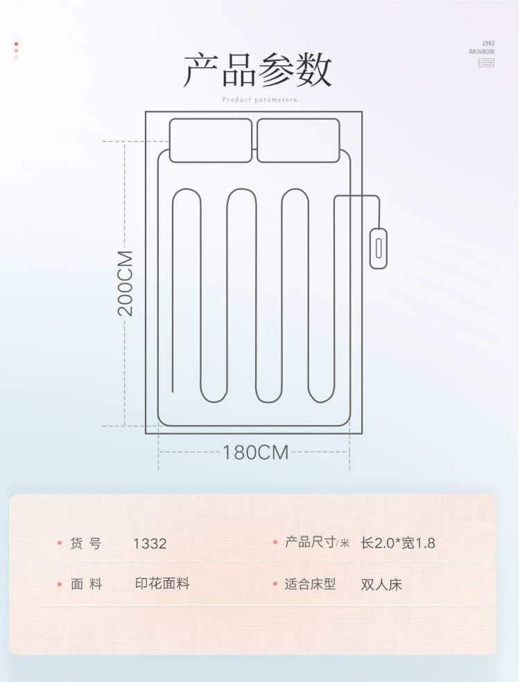 彩虹电热毯(长2.0*宽1.8)双控双温电热毯特大宽幅双人印花 1332【花色随机】