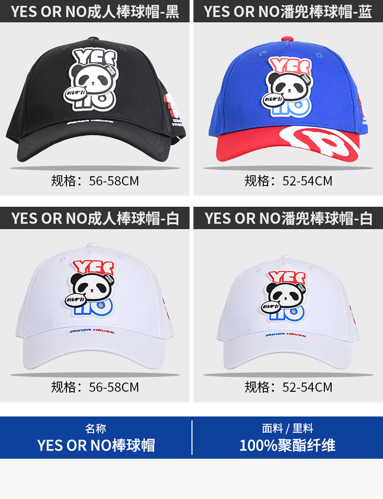 熊猫屋PANDAHOUSE yes or no成人/儿童棒球帽