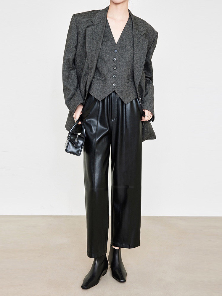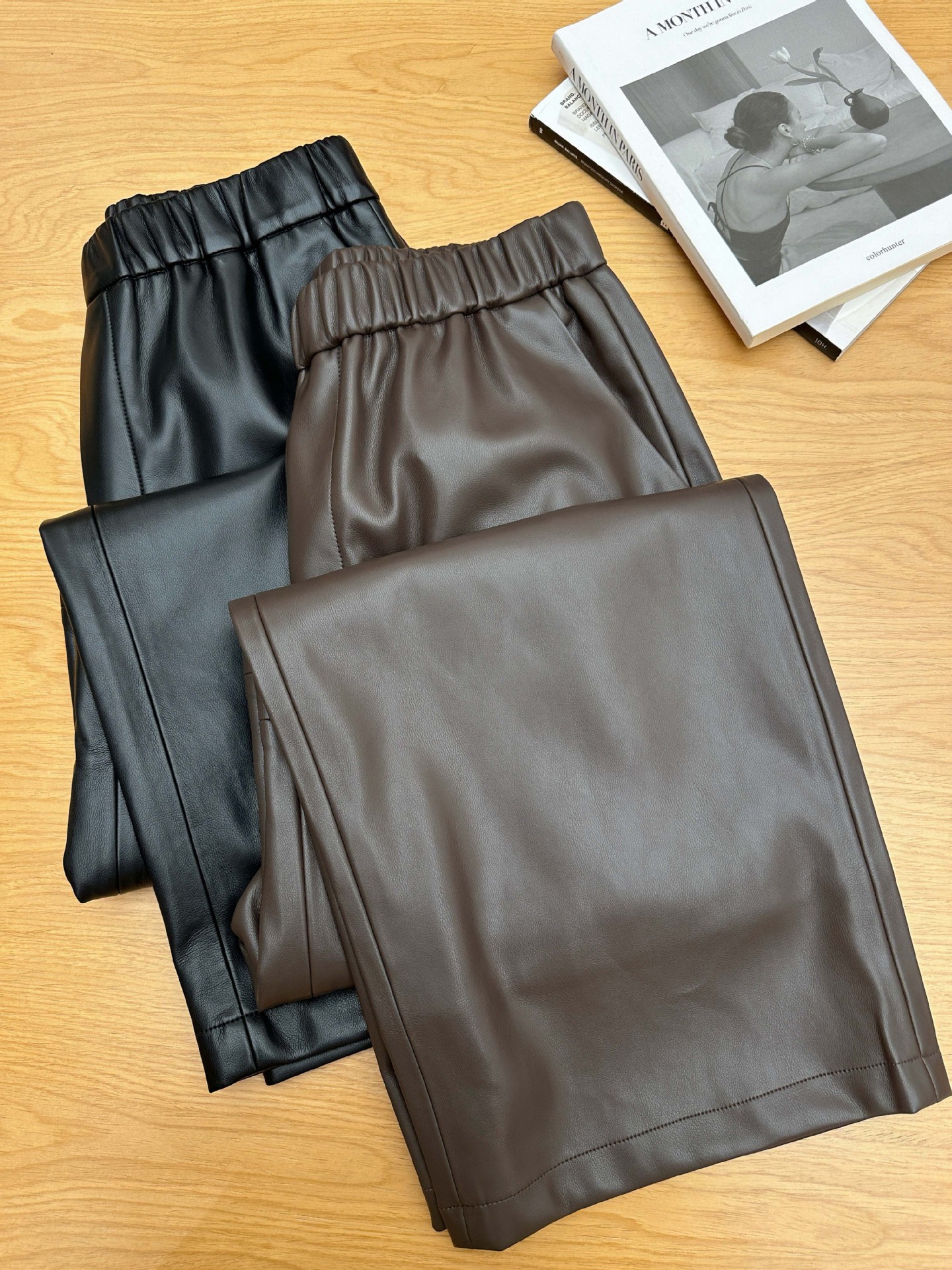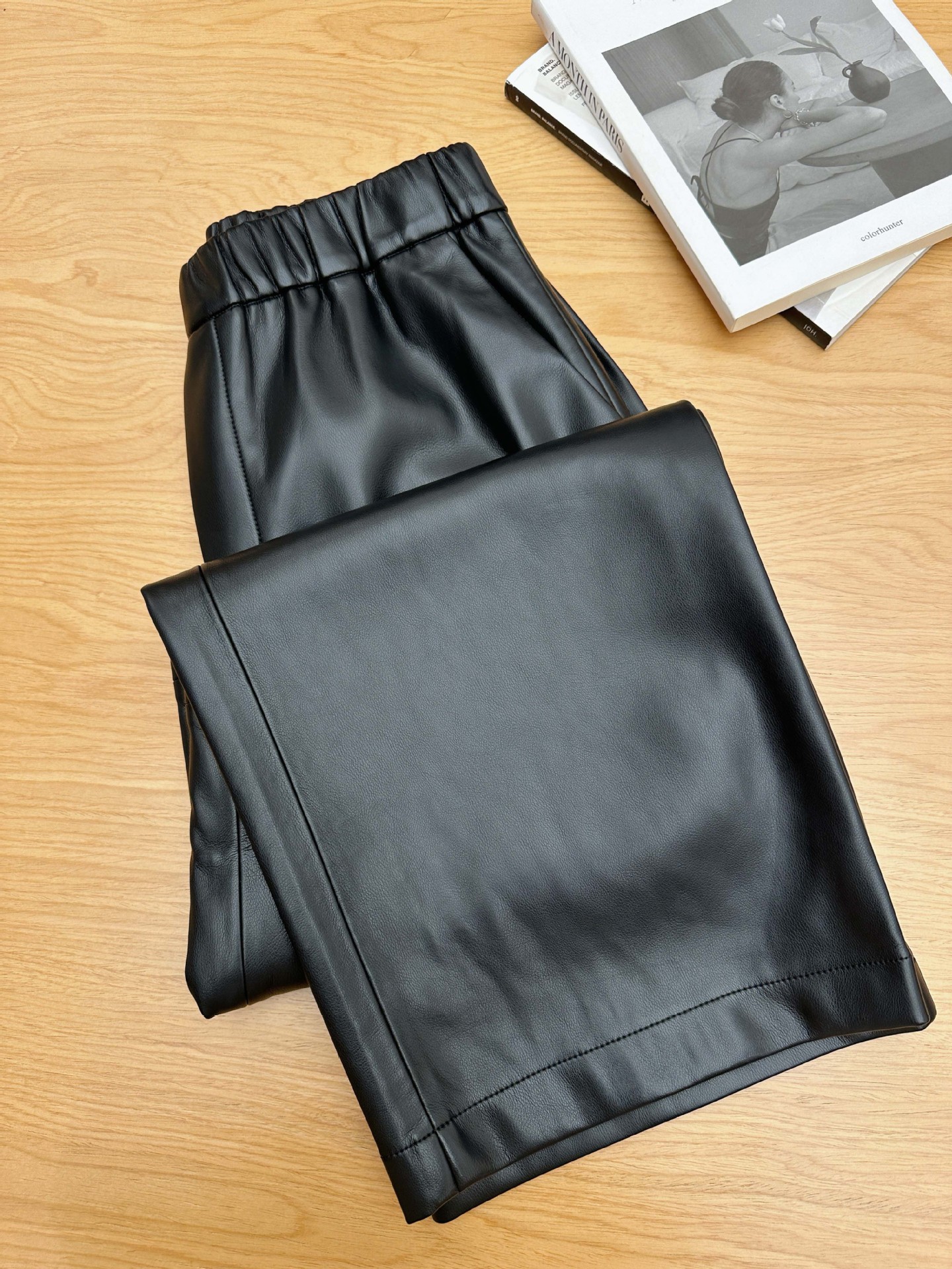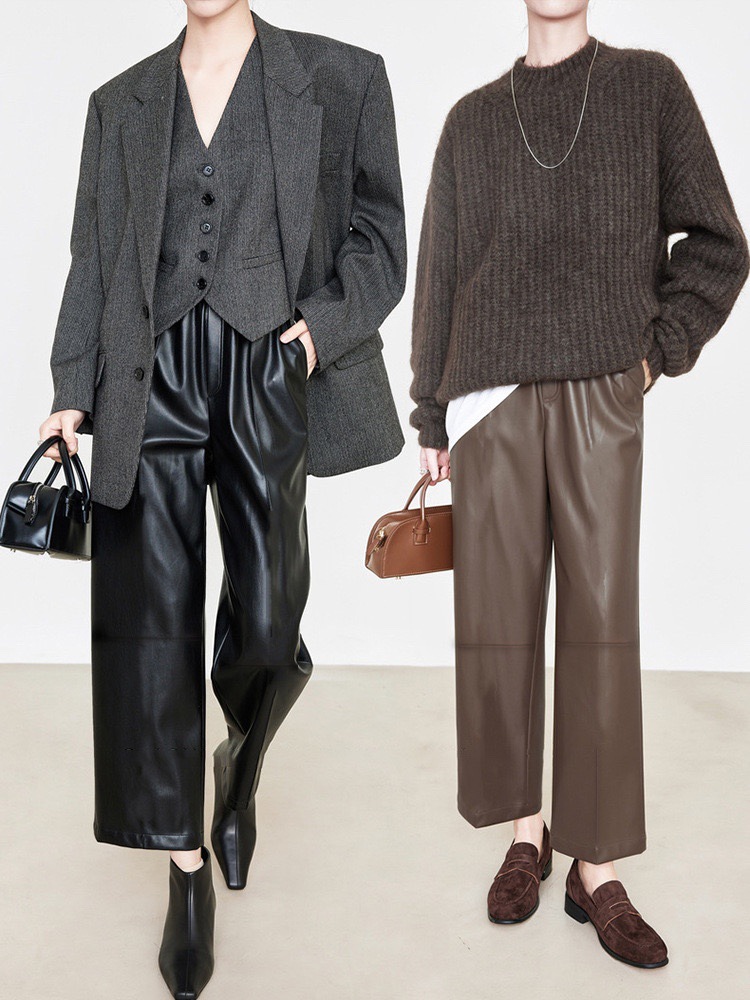 官网售价1500+复古美拉德压缝直筒皮裤秋冬的衣柜里面一定要有一条这样的皮裤
