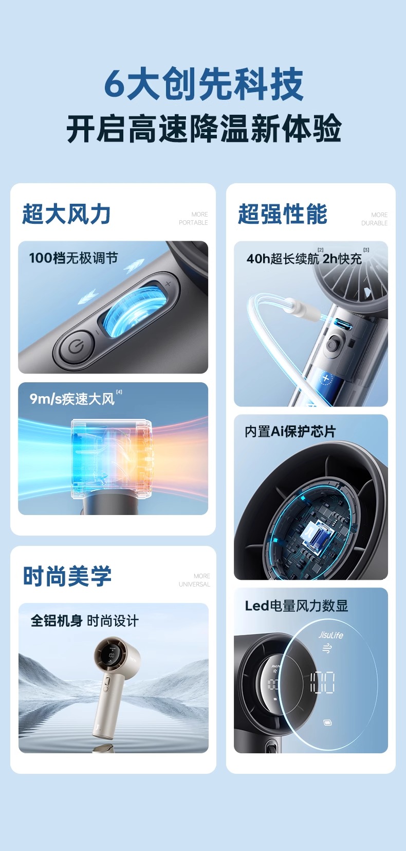 几素超高速小风炮强力制冷手持小风扇无叶涡轮迷你便携式USB充电桌面电风扇静音大风力降温神器随身电扇小型