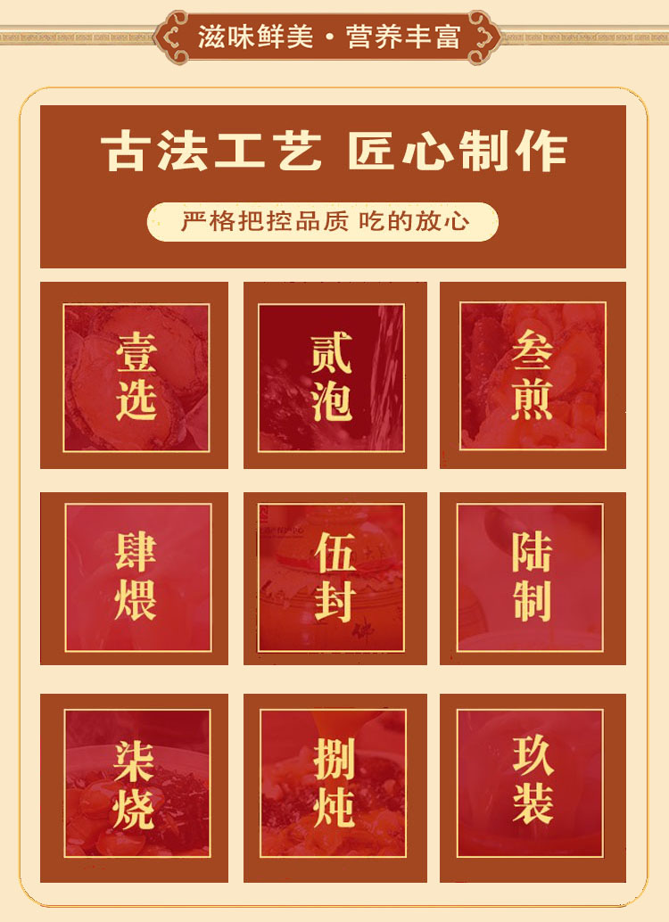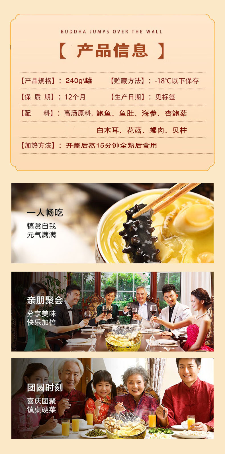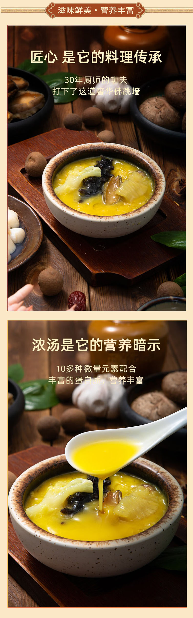金汤佛跳墙,10罐组合,汇集8种山珍海味,精选整只海参鲍鱼及深海花胶等珍贵食材,搭配多种山珍,高品质金汤,富含多种维生素及营养物质,一款适合所有人的山海珍馐M