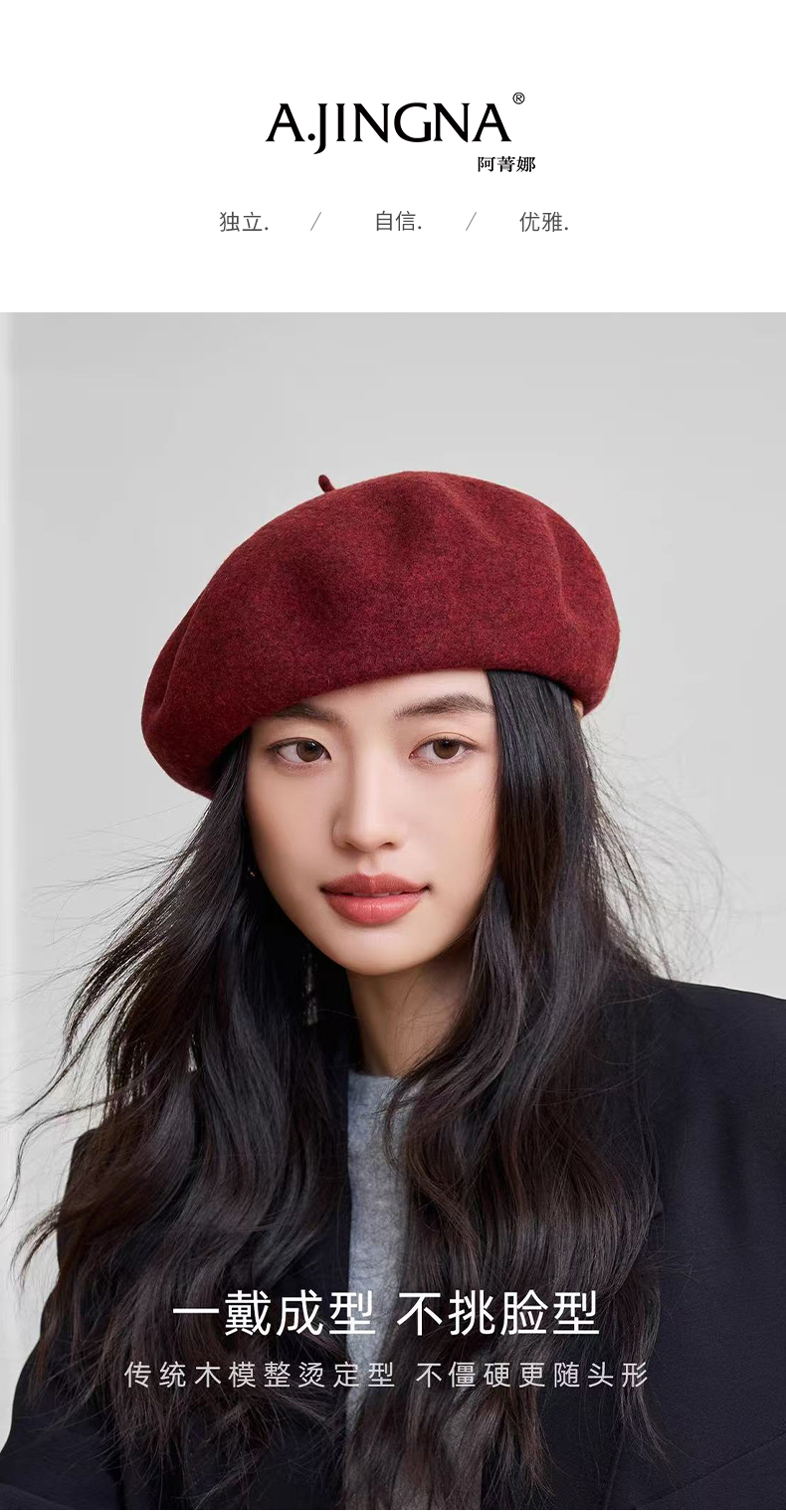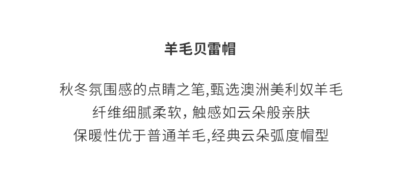 【羊毛贝雷帽】阿菁娜冬季新款澳洲美利奴羊毛贝雷帽云朵触感亲肤保暖秋冬基础帽型F30D327002