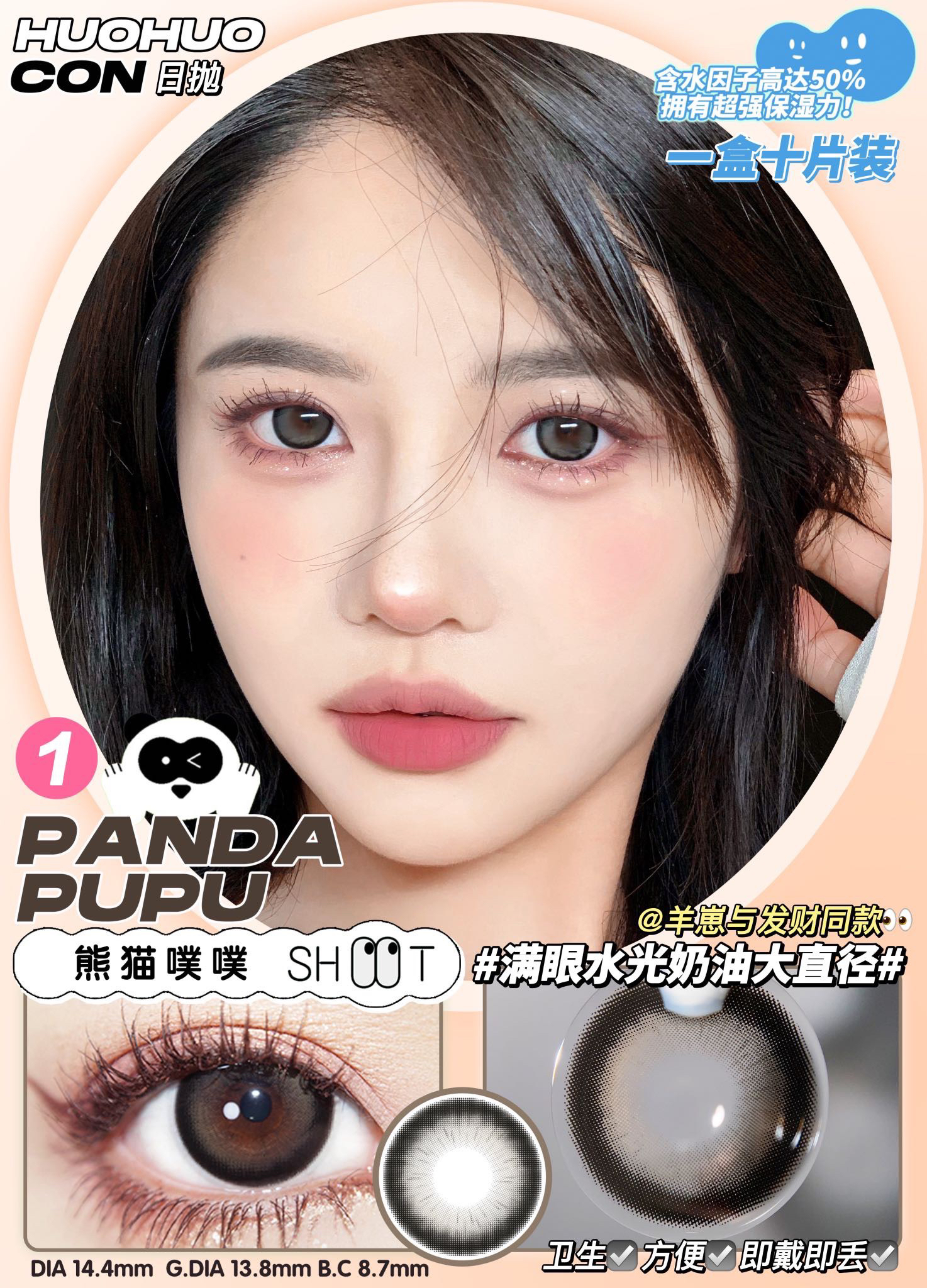 熊猫噗噗 直径14.4染色13.8基弧8.7含水量50%