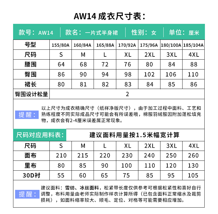裁缝学苑 AW14网红一片式半身裙1:1实物服装纸样剪裁图纸牛皮纸样