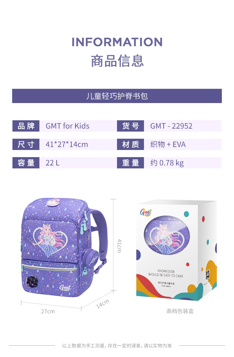GMT for Kids儿童背包男2022新款书包小学生三到六年级护脊减负女 Light系列22款