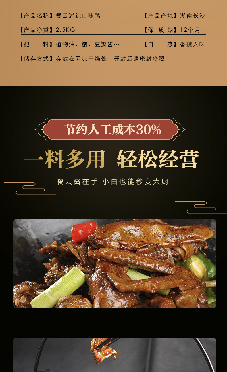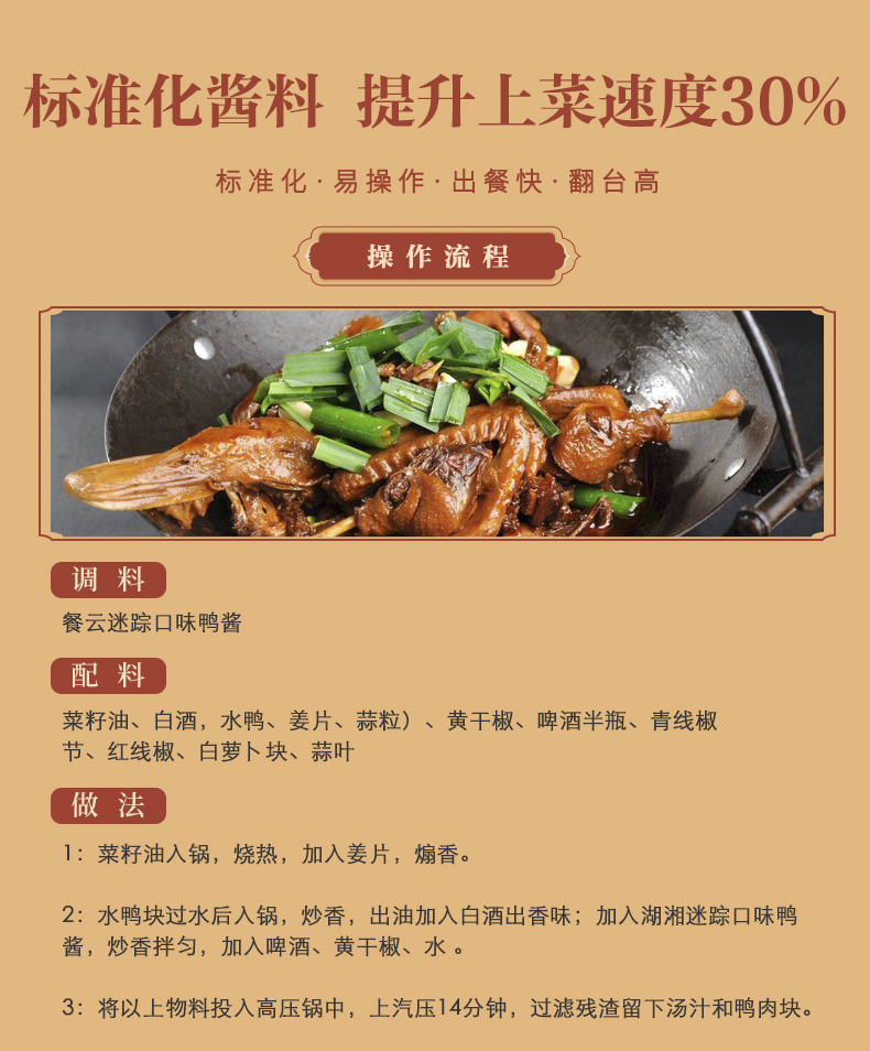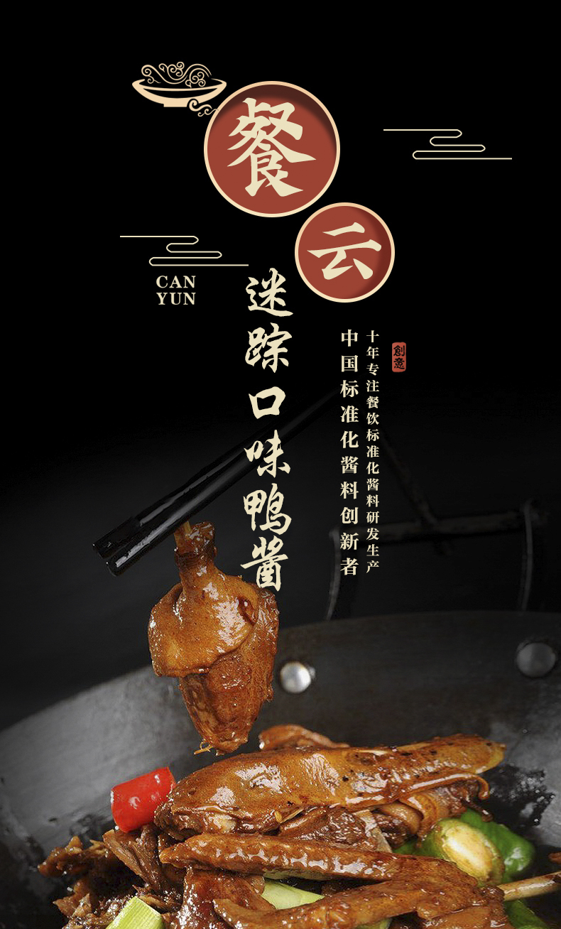创意餐云【湖湘迷踪口味鸭酱】,新菜品研发推荐,融合钱粮湖土鸭,老长沙口味鸭,湘式醉鹅之长,创新融合味型,标准化操作简单极致。