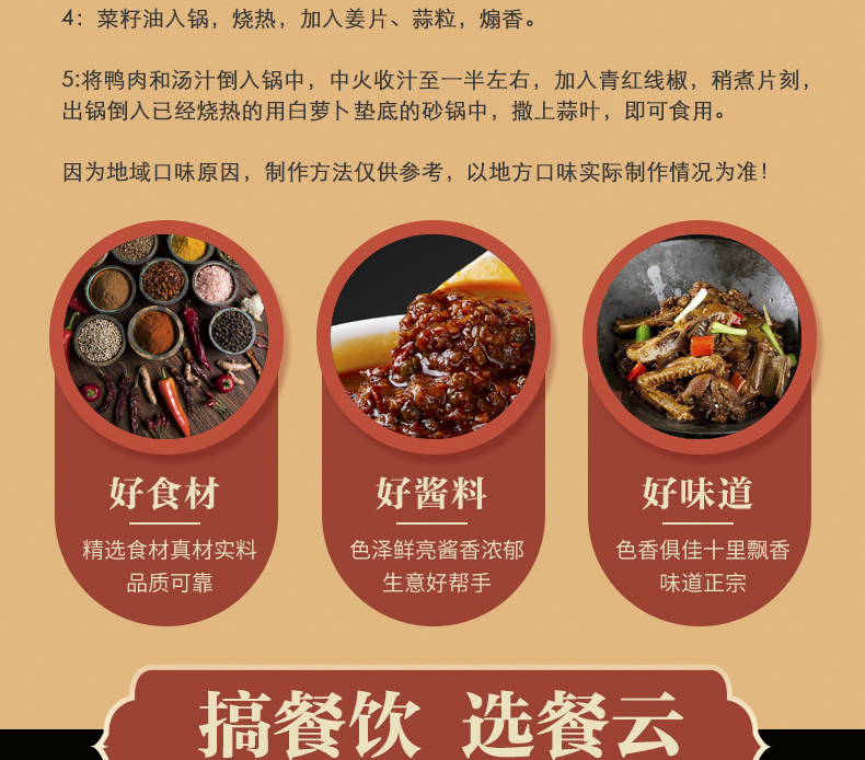 餐云迷踪口味鸭酱 迷踪菜品匠人操刀研发 超过1000家湘菜连锁特色口味鸭应用标准化配方 (5斤装一桶做25份)