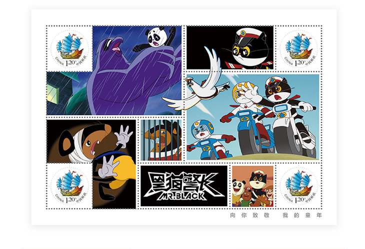 内含邮票完整大版、首日封、4枚版《黑猫警长》个性化邮票。