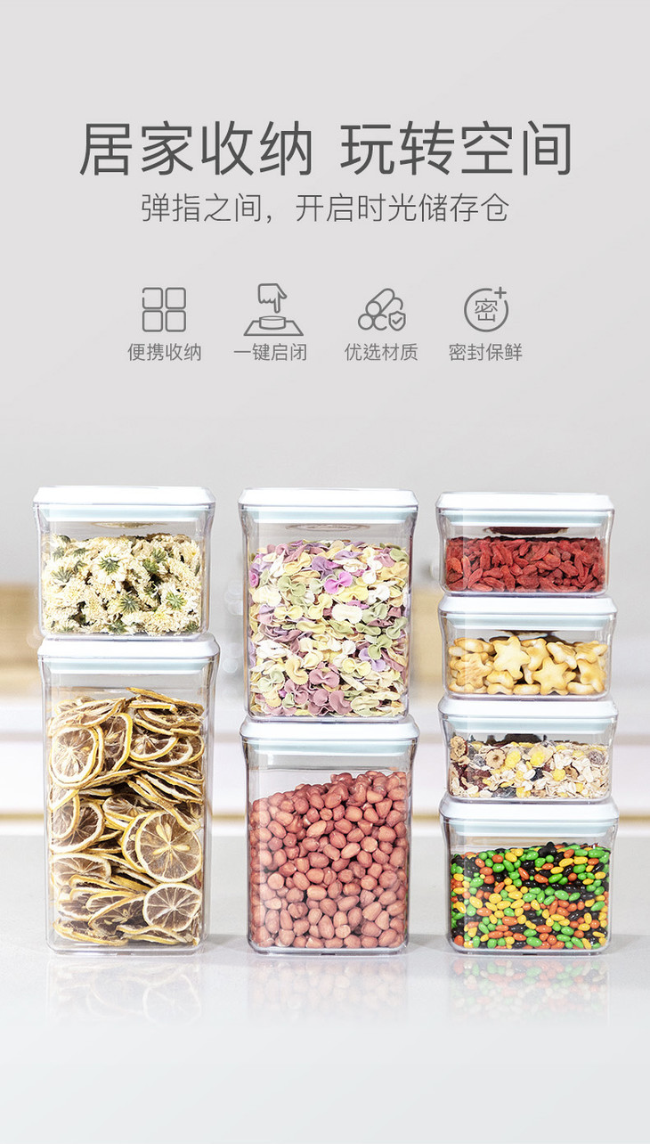 有了它你家调料再也不窜味了,干货再也不长毛了!安扣密封罐套装 一按密封,不漏水不透气,真正的食品级材质