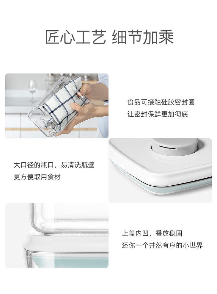 大口径瓶口,易清洗瓶壁方便取用食材。