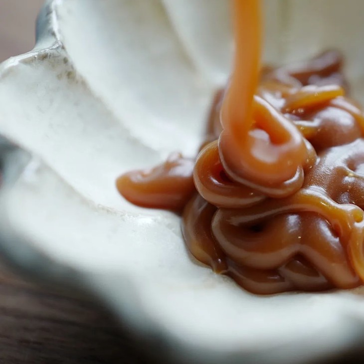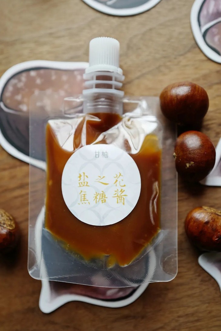 除了被包裹蛋糕内的盐之花焦糖酱外,随蛋糕附赠一份独立包装盐之花焦糖酱,可随喜好淋于切片蛋糕上,丰俭由人。焦糖酱并不很甜,请不要吝啬用量。