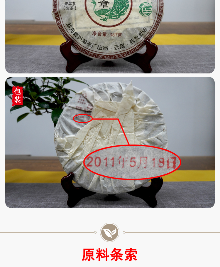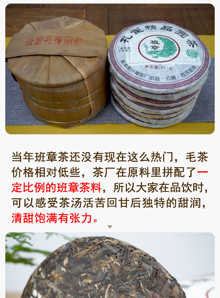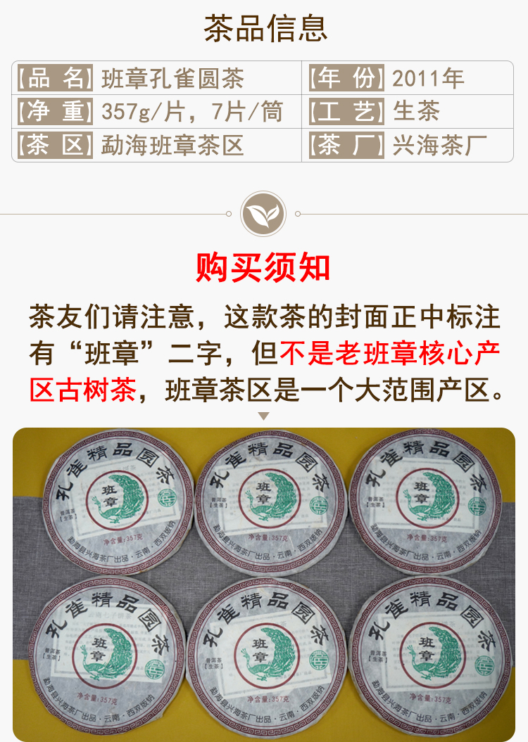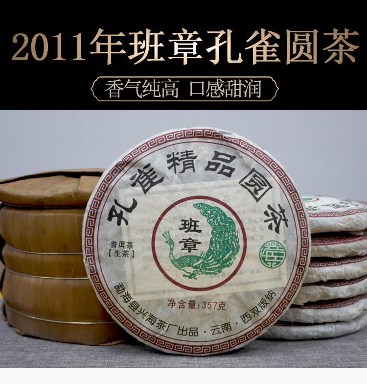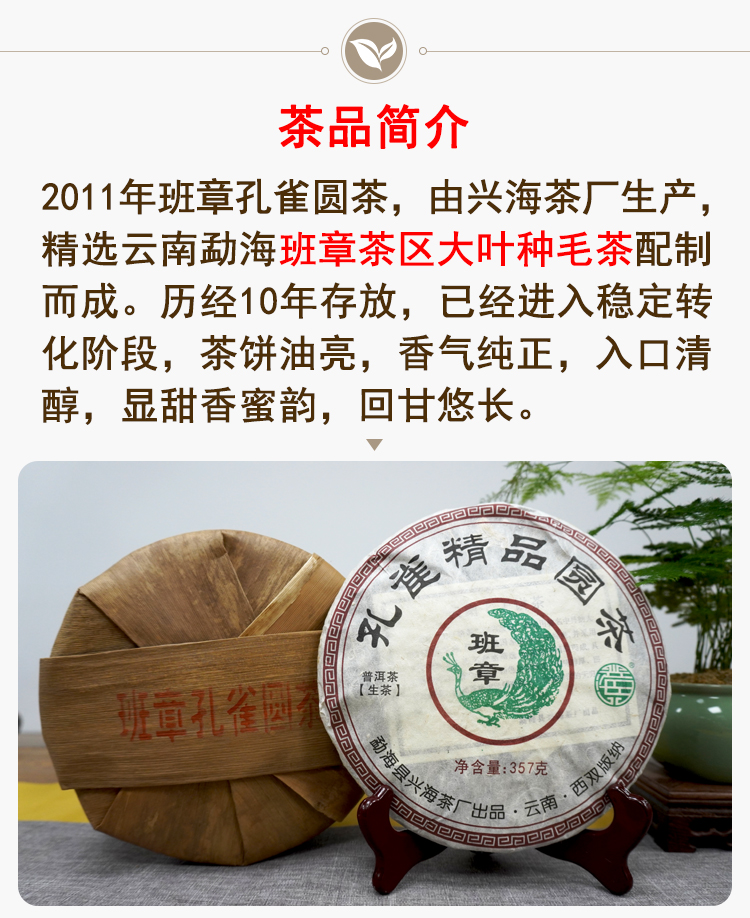 【精品品牌班章生茶】2011年兴海茶厂孔雀精品圆茶普洱茶生茶饼 虽然不是老班章原料 但是早年配的班章料口感很好性价比很高 高性价比品牌生茶