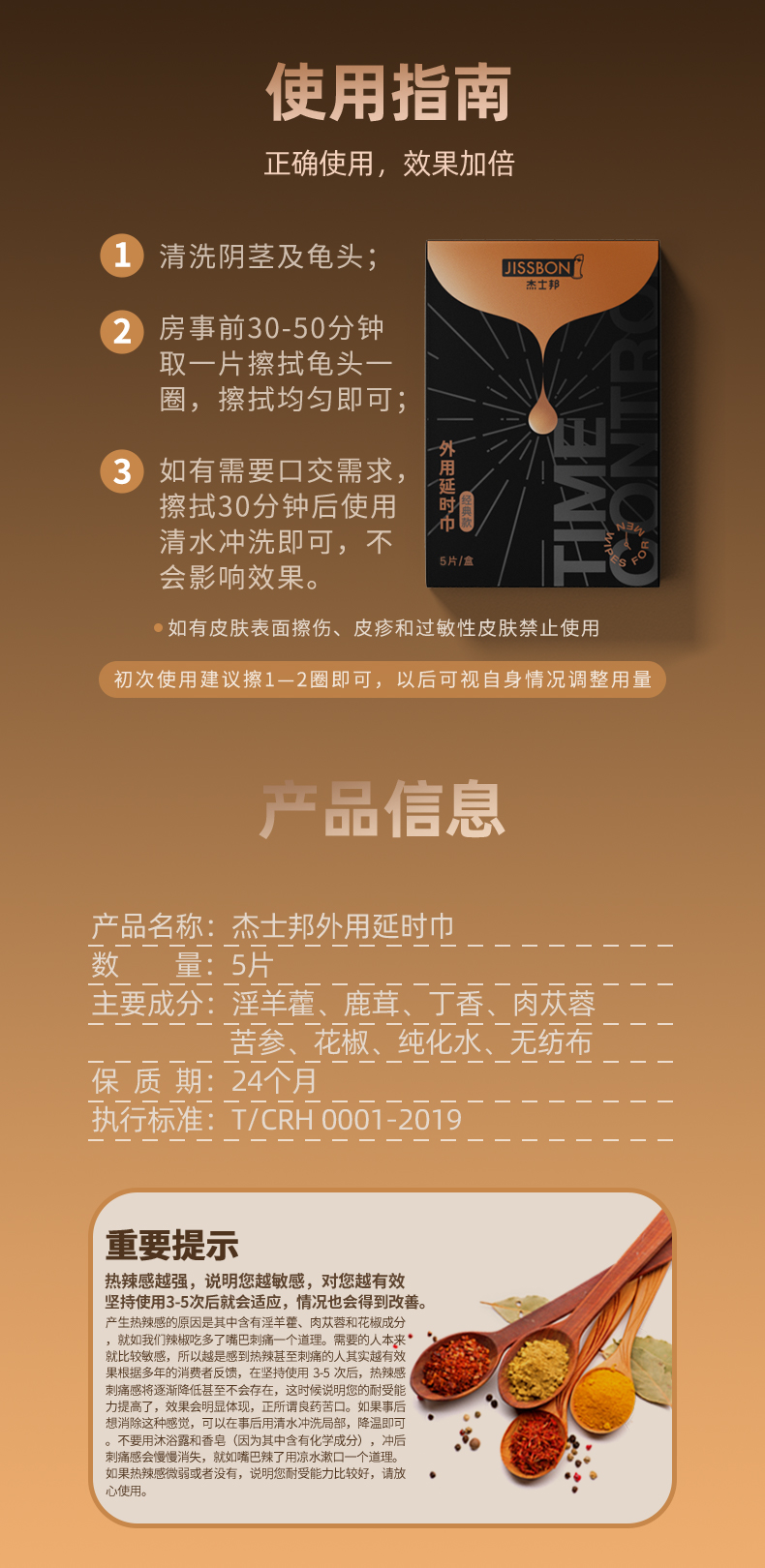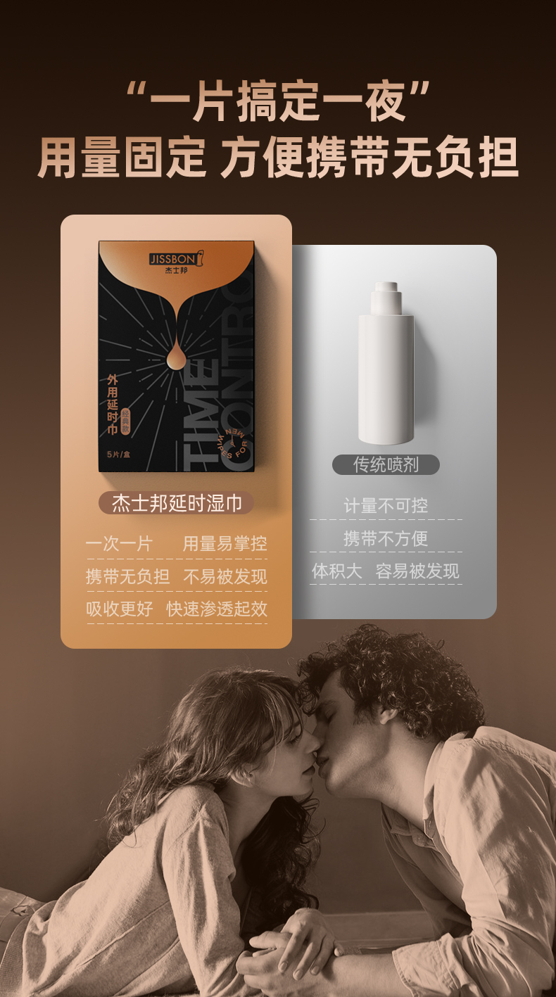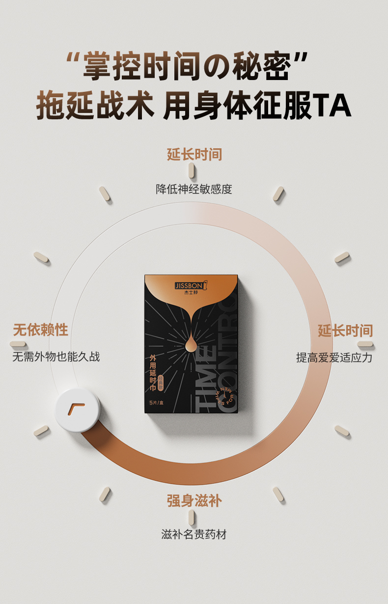 杰士邦经典版5片延时湿巾 男用延时喷雾喷剂湿巾持久延迟助勃起增硬环不麻可口成人男性用品 【精选延时】